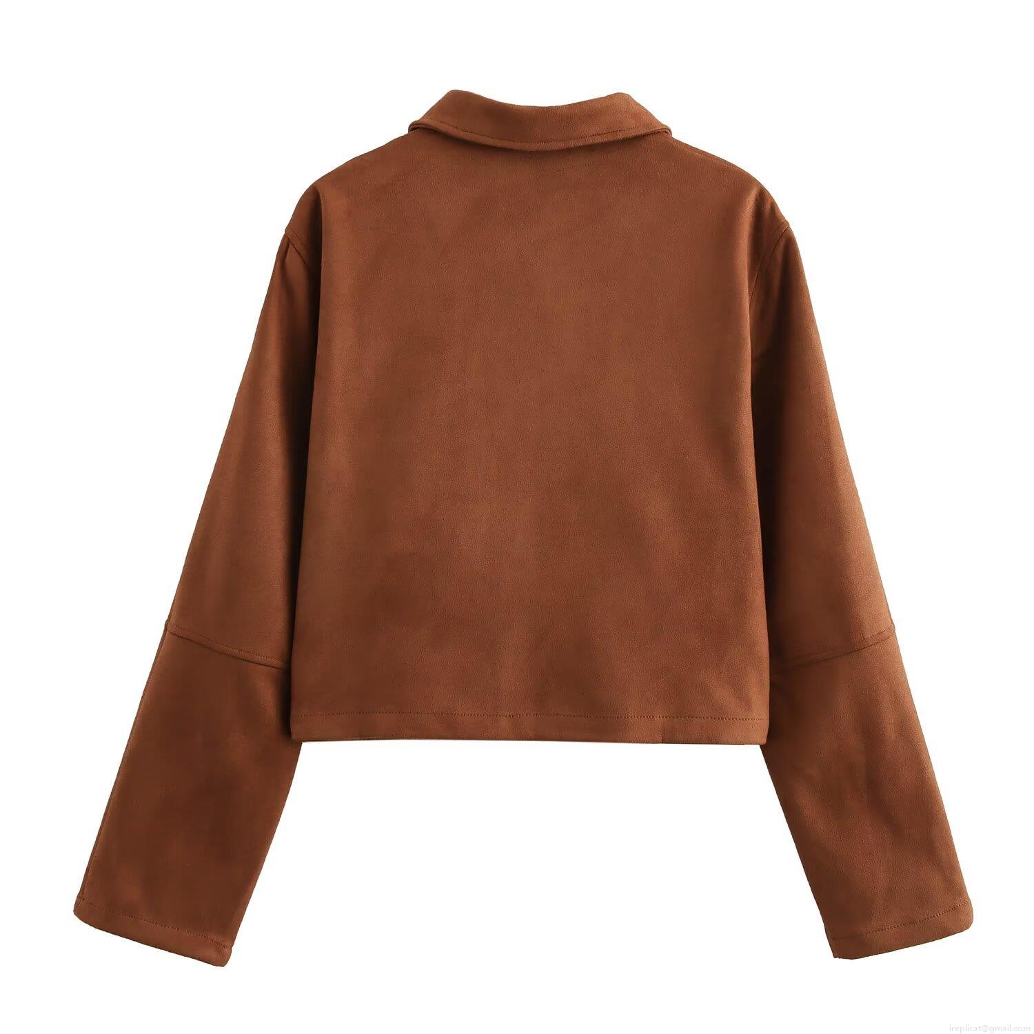 Women's Faux Suede Jacket Lapel Long Sleeve Solid Color Zipper Short Coat Streetwear Fashion Outerwear For Autumn Winter Ladies