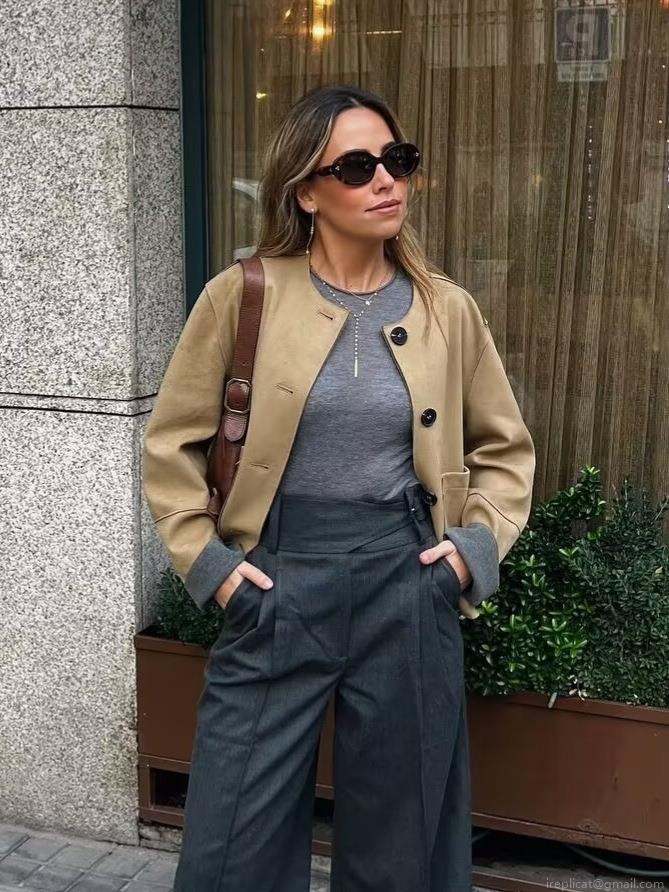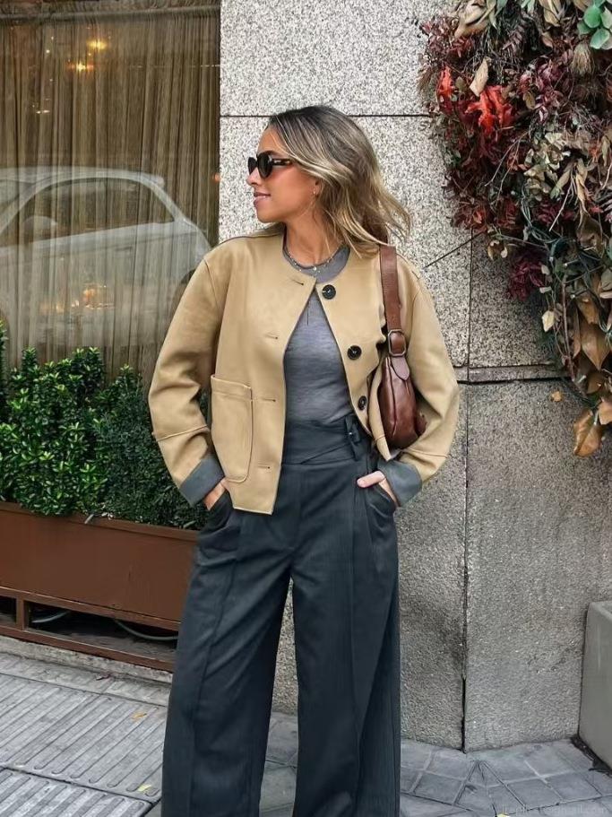 Women's Faux Suede Jacket Round Neck Long Sleeve Button Down Short Coat With Pockets Casual Streetwear Solid Color Minimalist Outerwear Jacket for Ladies