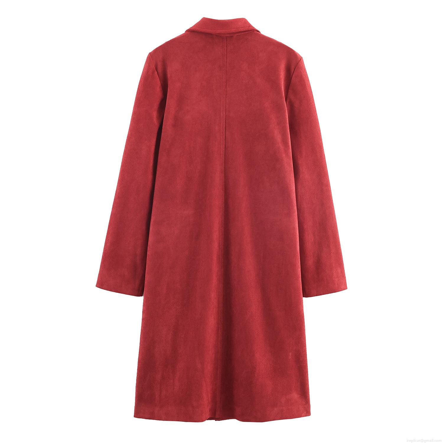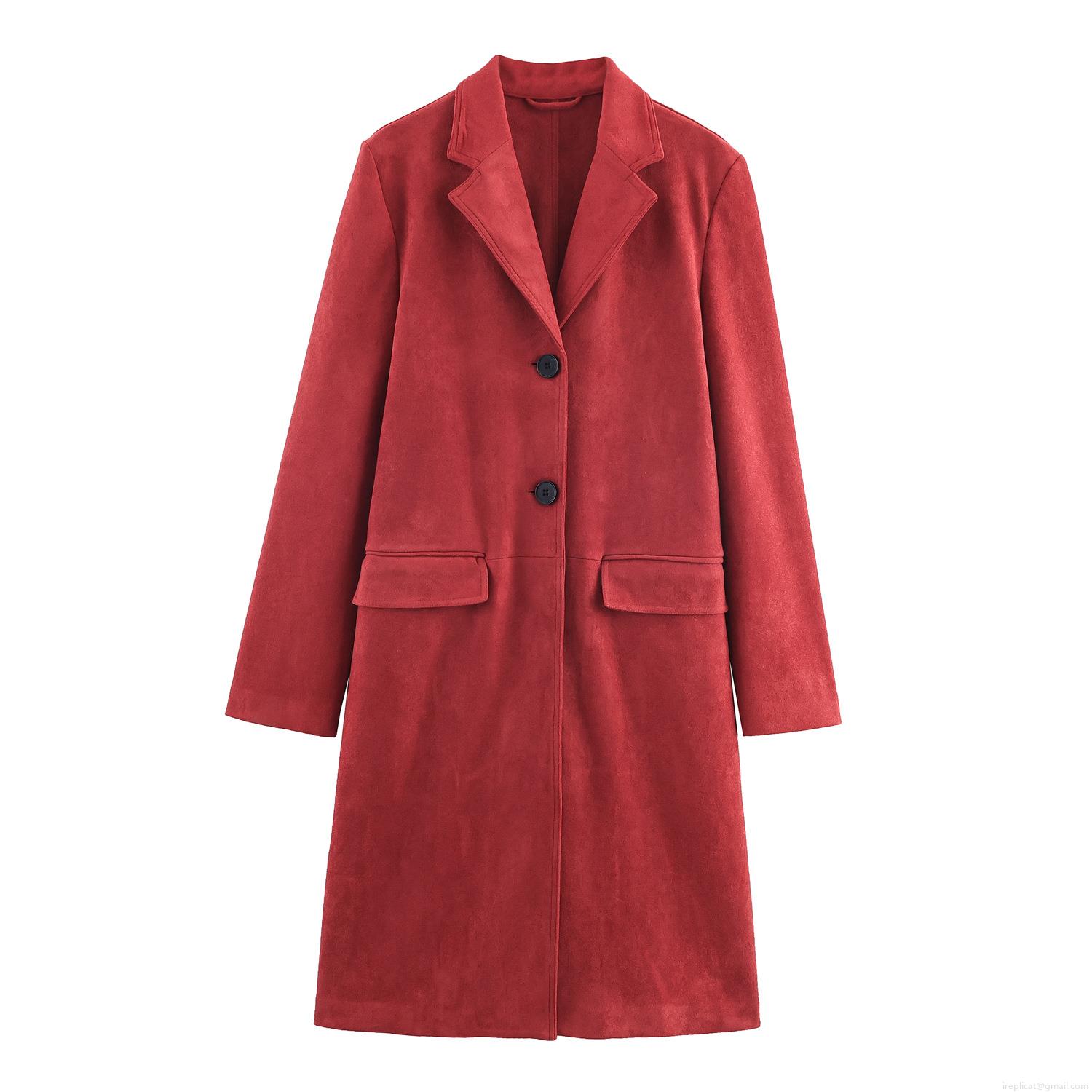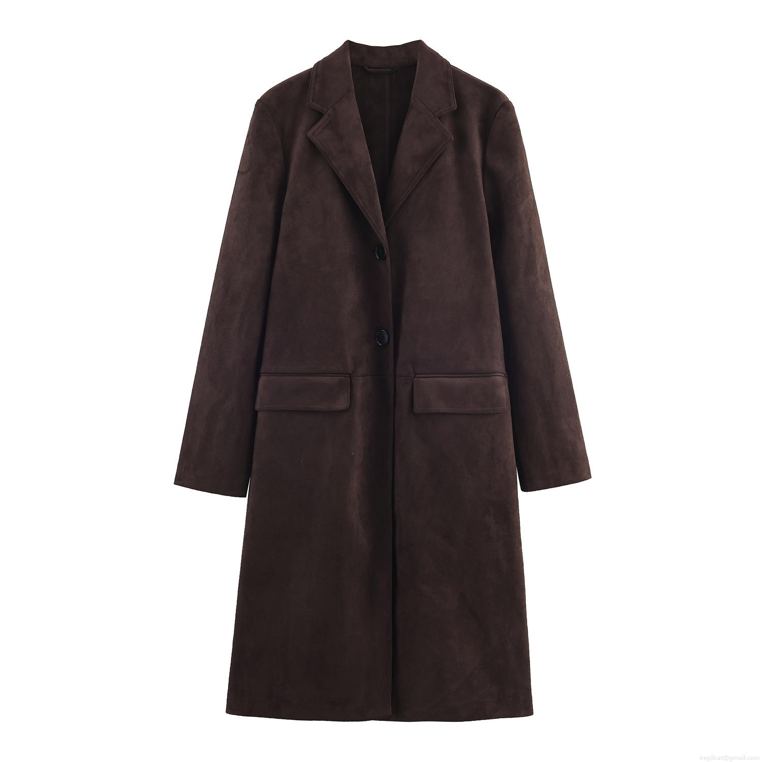 Women's Faux Suede Long Overcoat Winter Warm Lapel Single Breasted Jacket With Pockets Polyester Solid Color Casual Elegant Outerwear For Women