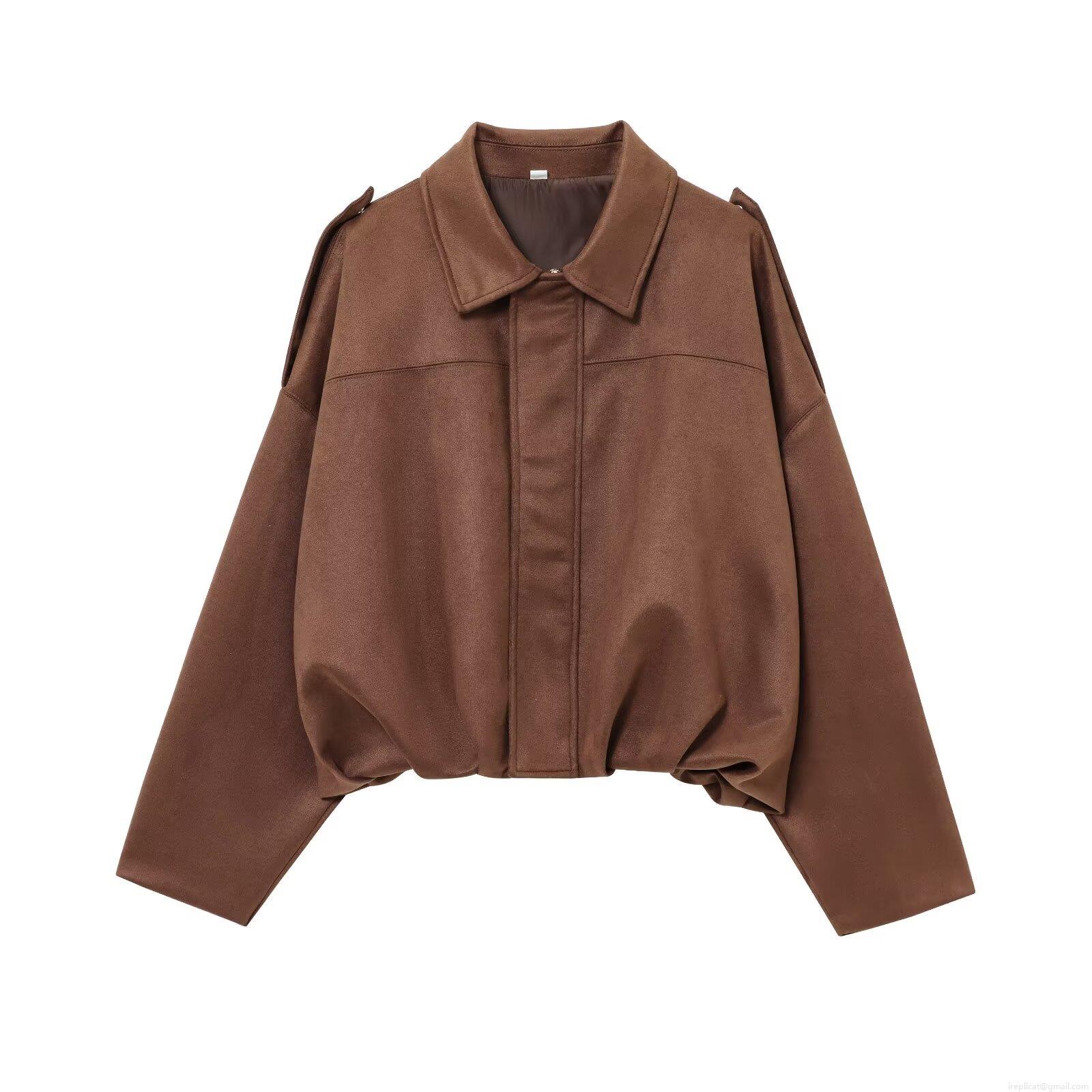 Women's Faux Suede Polyester Bomber Jacket Casual Loose Outerwear...