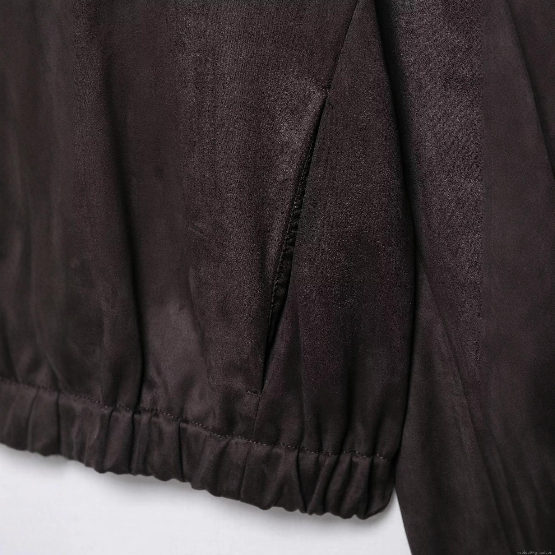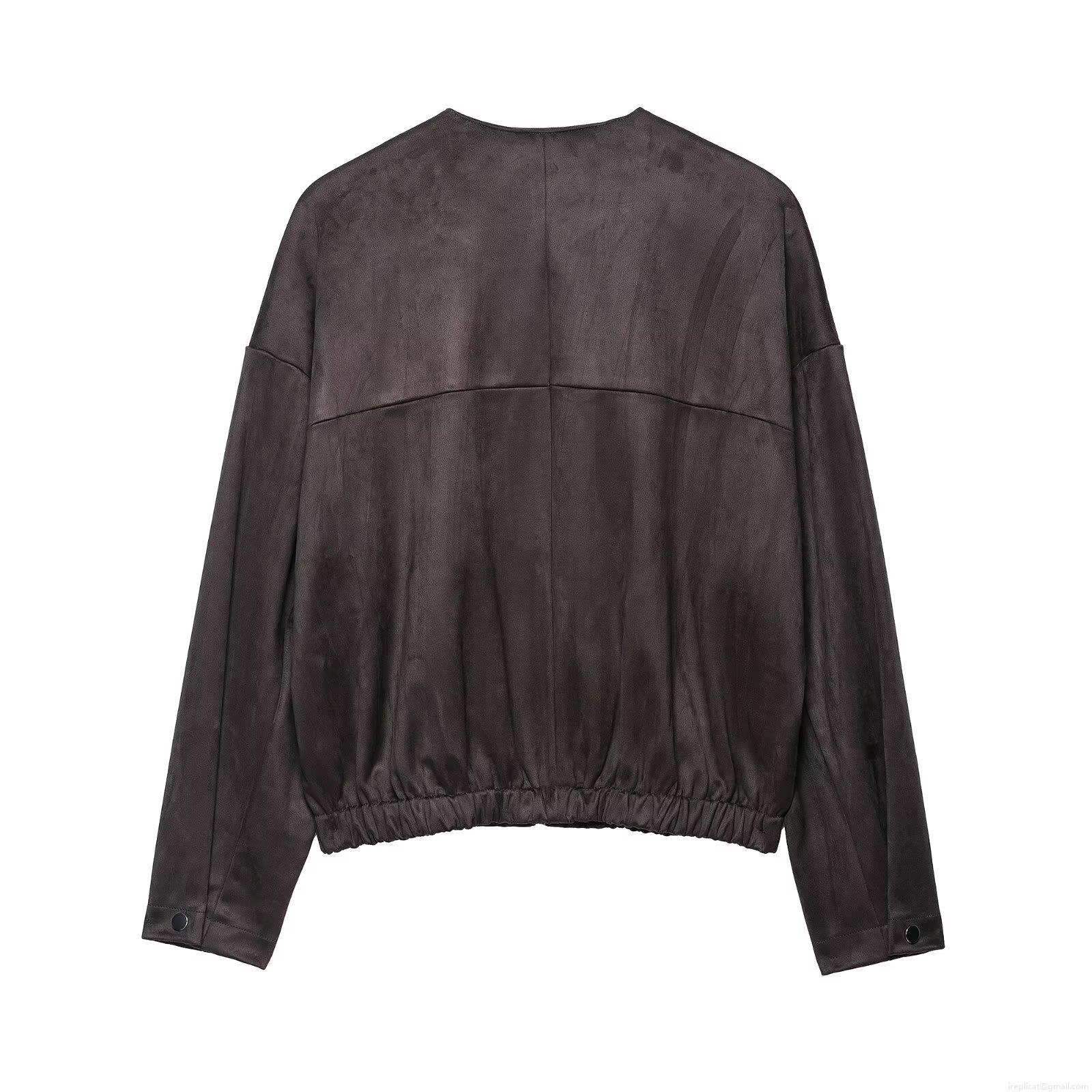 Women's Faux Suede Round Neck Jacket Vintage Casual Zipper Bomber Outwear With Elastic Hem Long Sleeve Solid Color Warm Coat For Autumn Spring Women Fashion