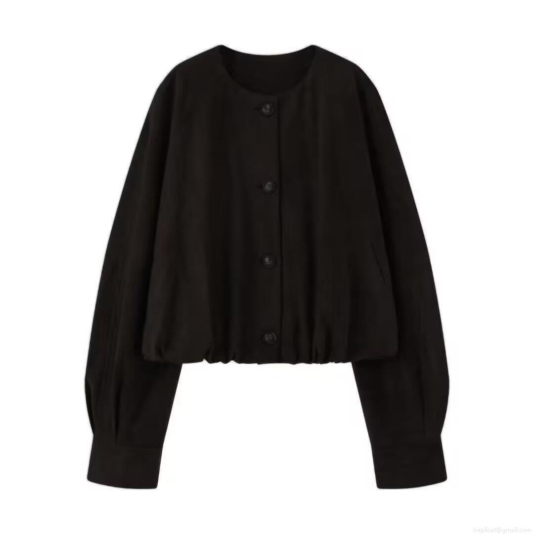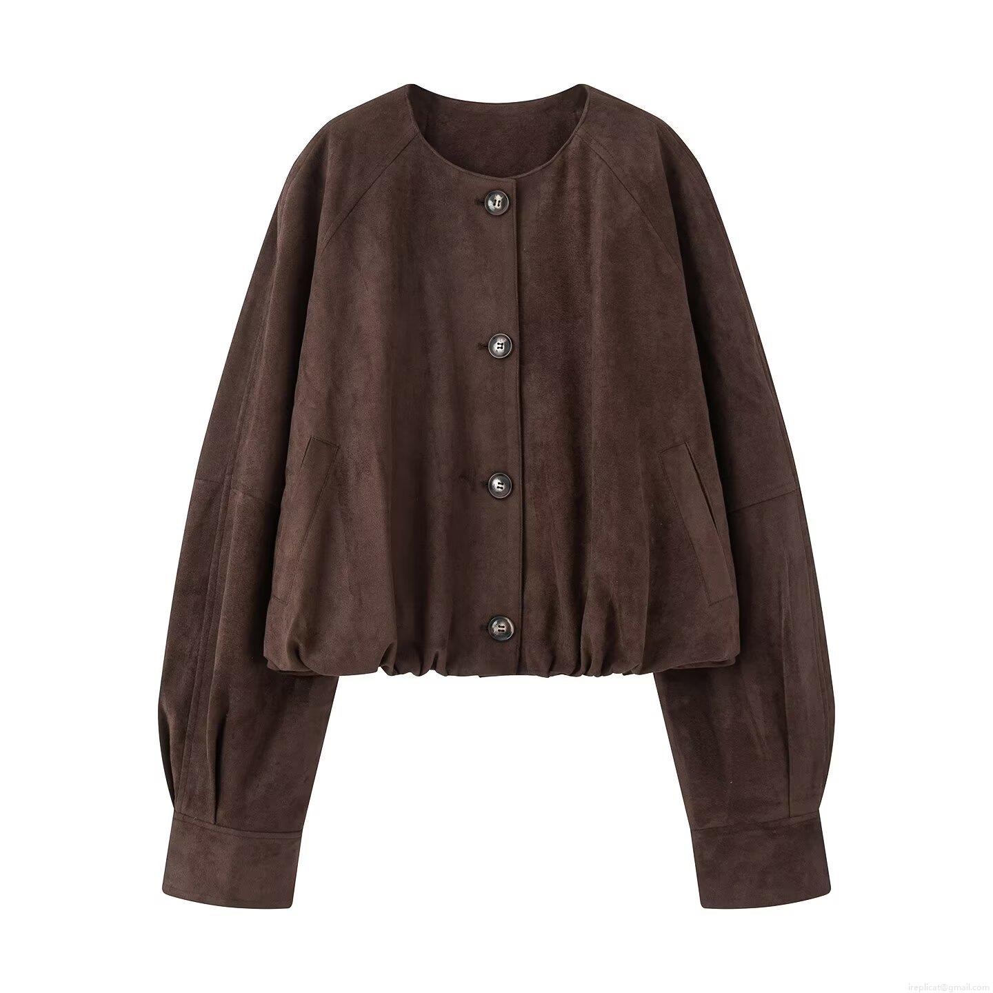 Women's Faux Suede Short Jacket Round Neck Single Breasted Long Sleeve Loose Coat Casual Solid Color Autumn Winter Outerwear With Pockets Streetwear