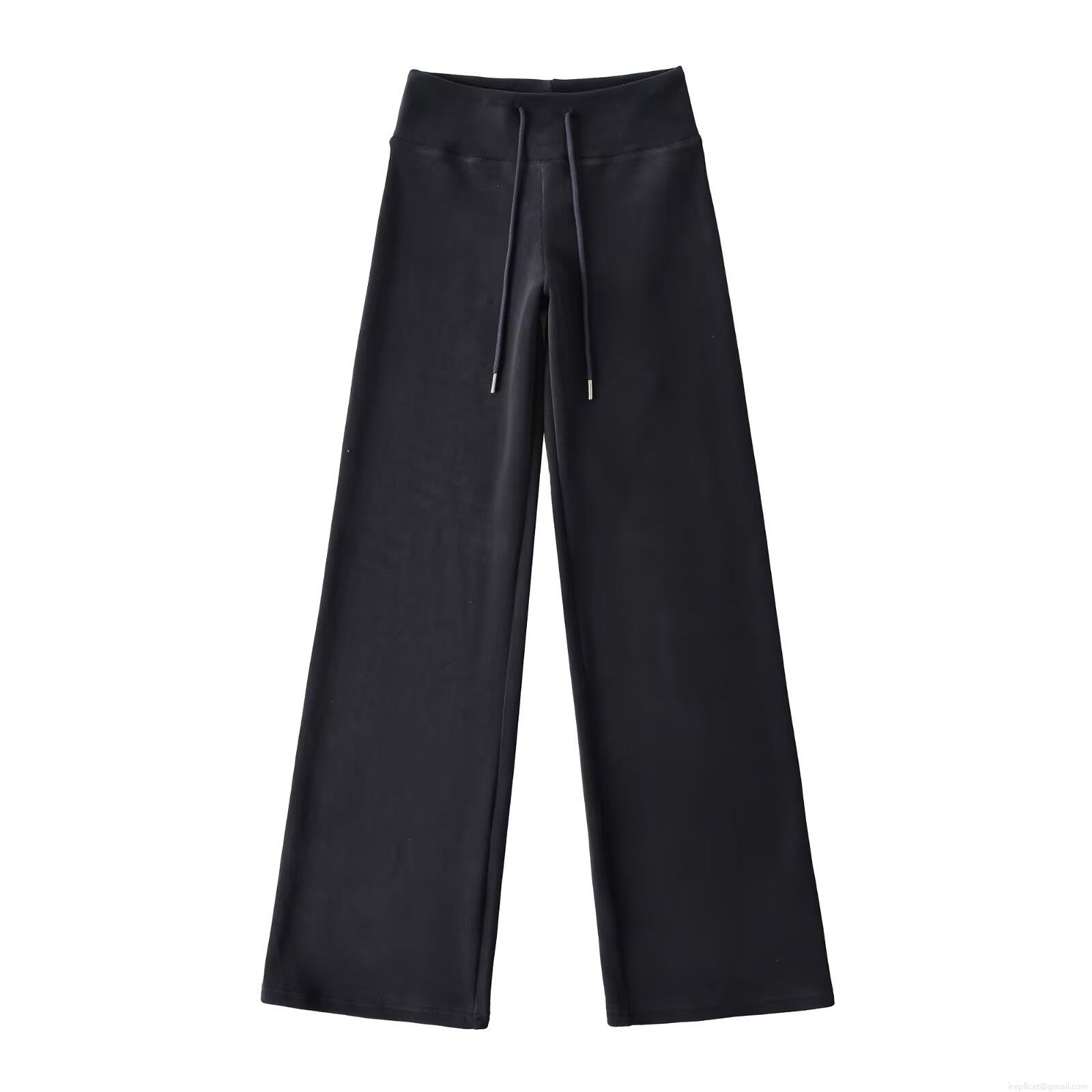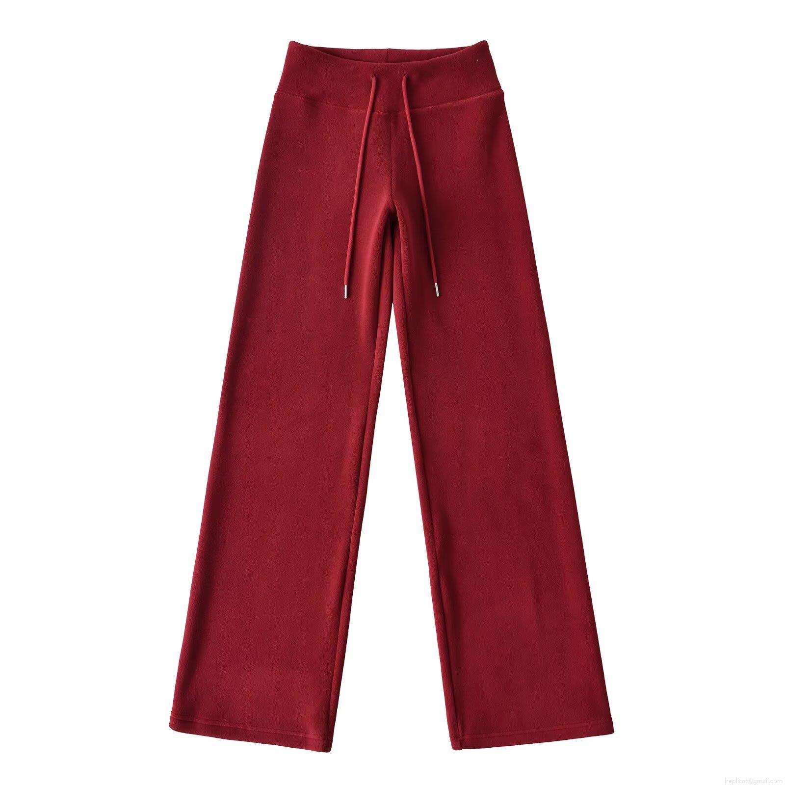 Women's Fleece Lined Wide Leg Pants Polyester Drawstring Elastic Waist Solid Color Casual Streetwear Warm Winter Trousers For Women