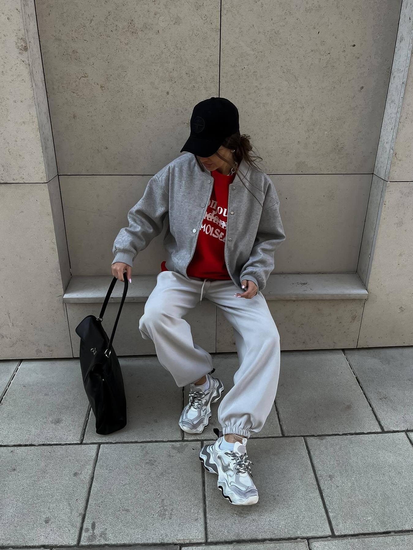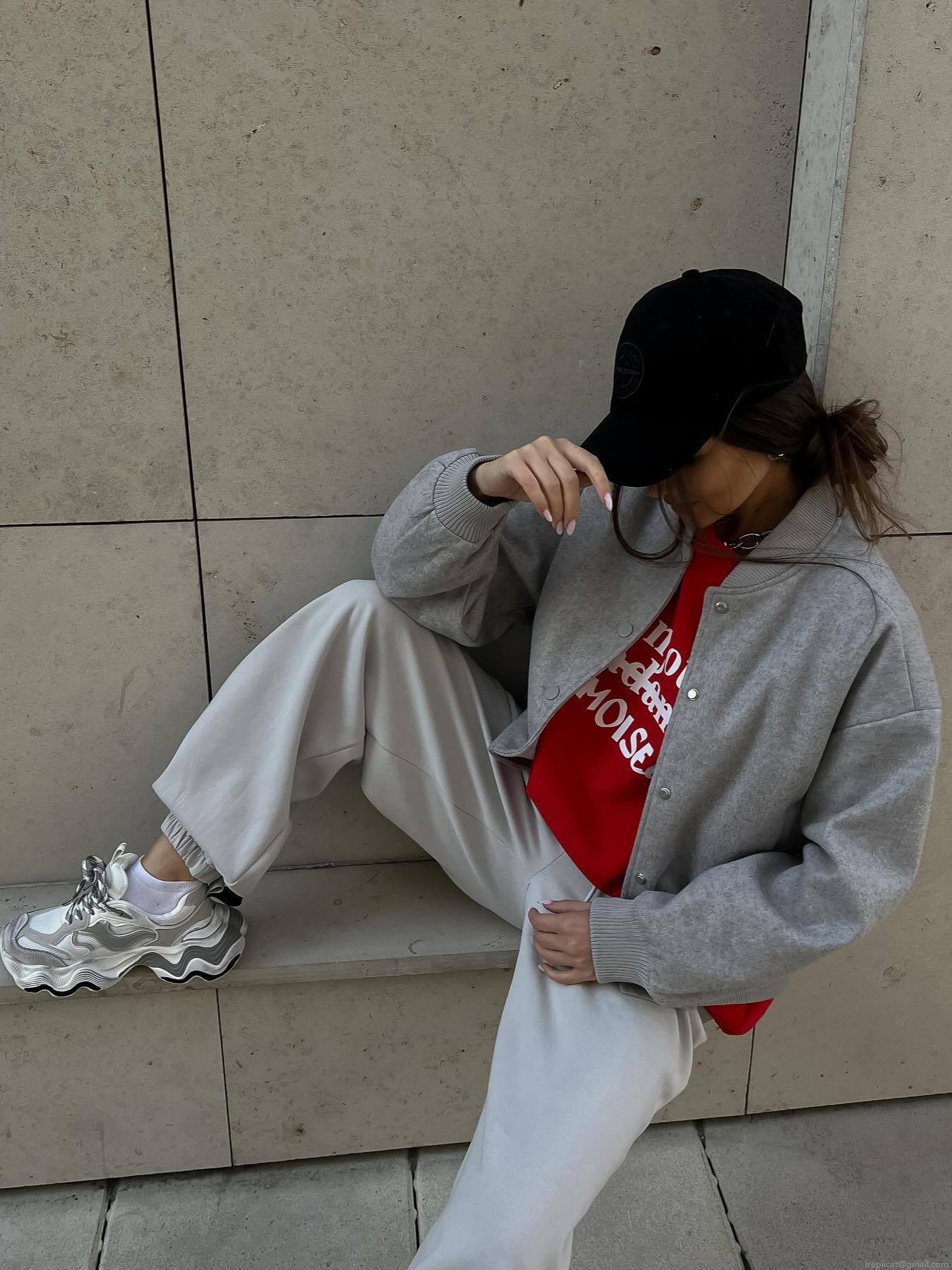 Women's French Niche Solid Grey Baseball Jacket Casual Cotton Linen Blend Zipper Bomber Jacket Streetwear Cropped Long Sleeve Outerwear Top For Women Autumn Fashion