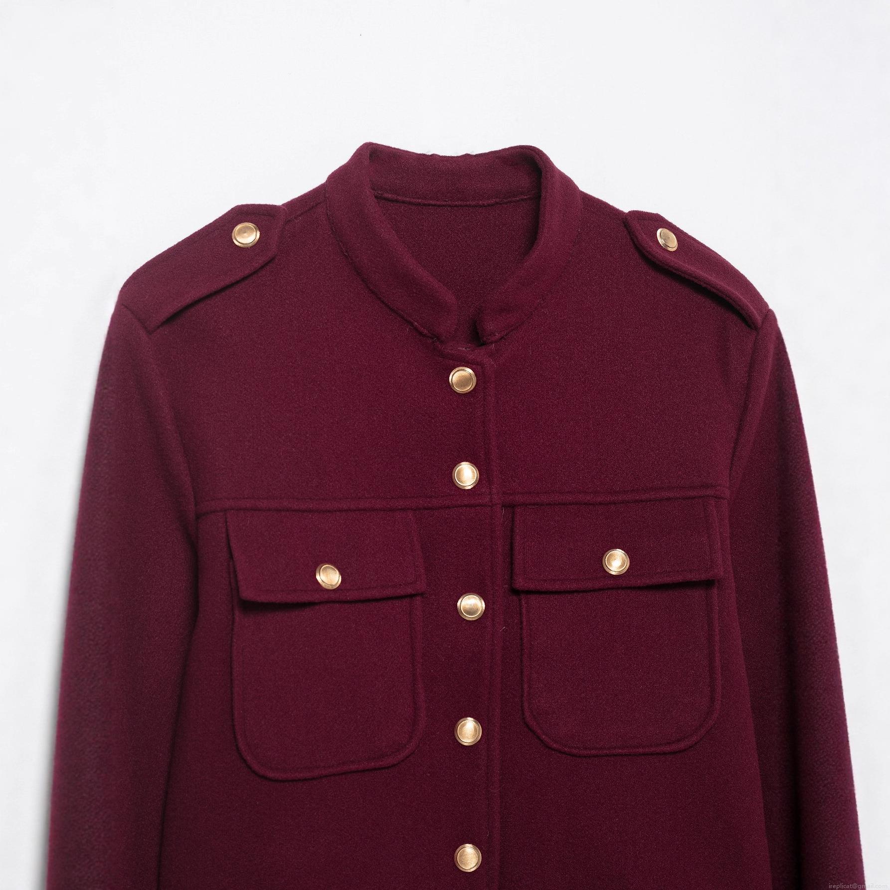 Solid Color, Shoulder Epaulettes, Stand-up Collar, Gold Metal Buckle, Work Pockets