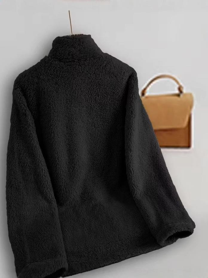 Solid Color, Button Decoration, Plush Elements, Side Pockets