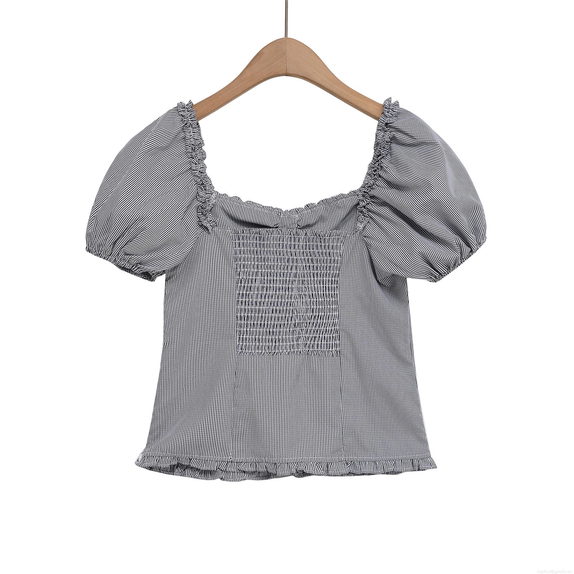 Women's Gingham Plaid Ruffle Trim T-Shirt Puff Sleeve Square Neck Button Up Polyester Blend Top Summer Fashion Streetwear Daily Casual Ladies Blouse
