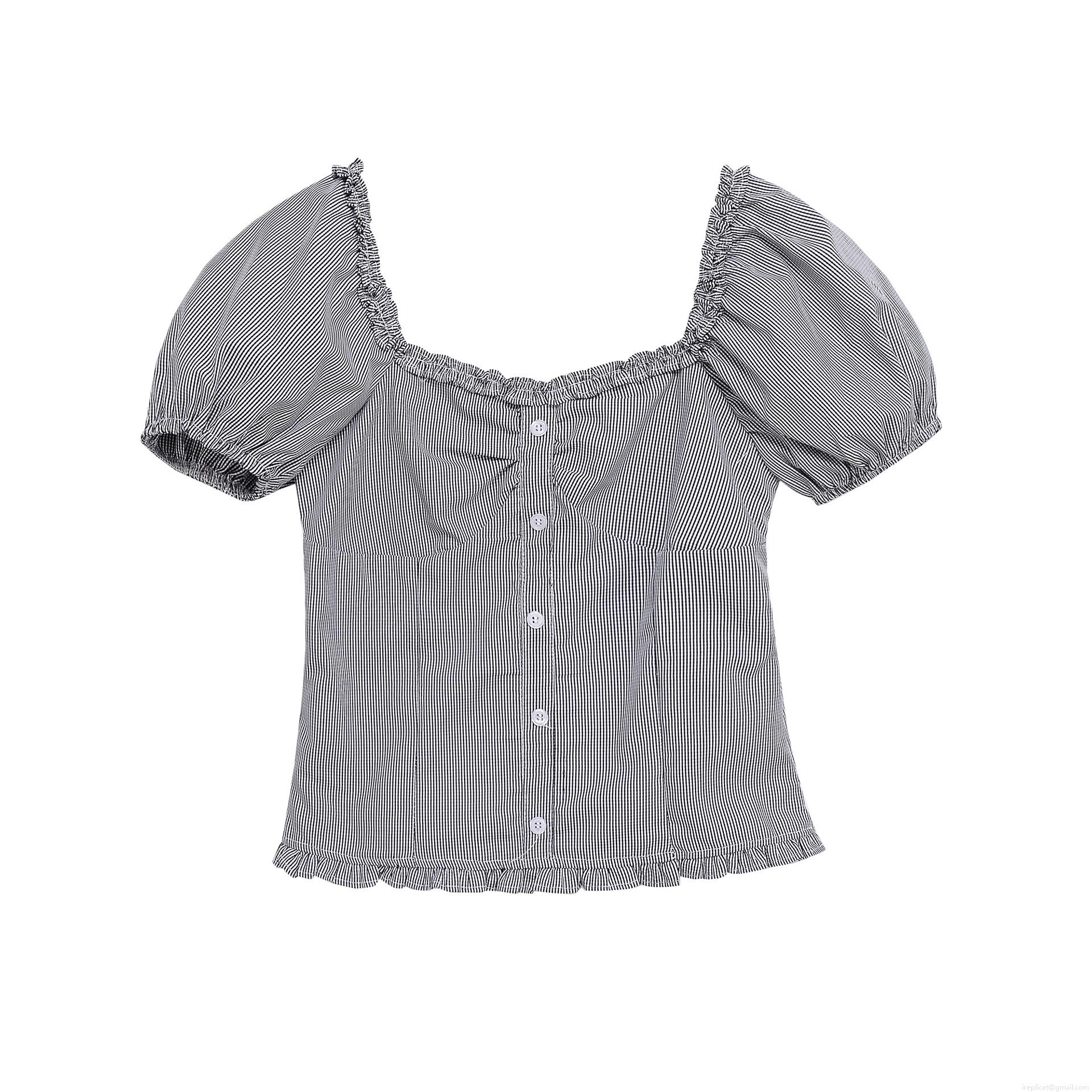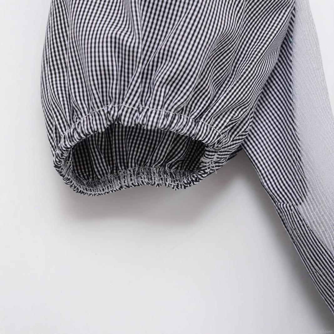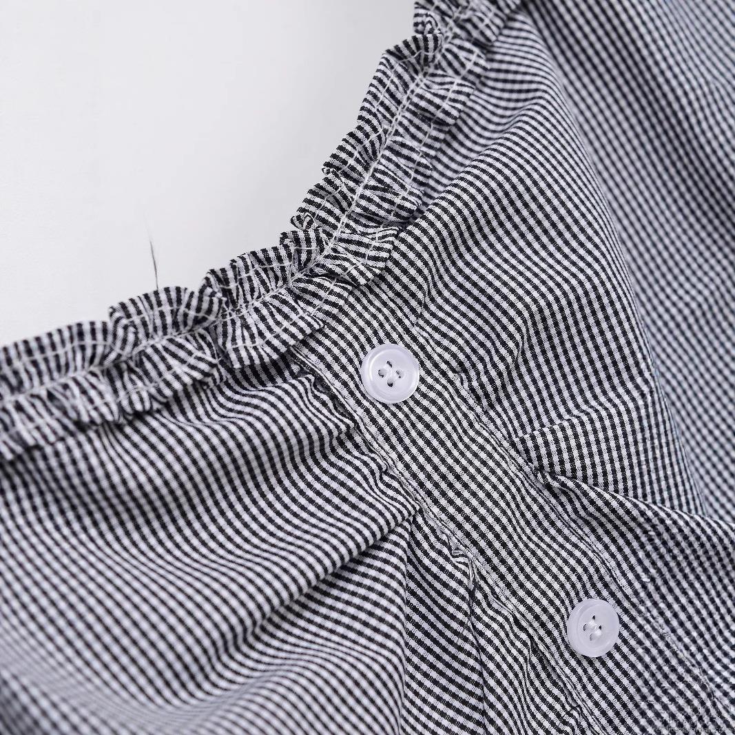 Wood Ear Edge, Pinstripes, Checkered Pattern, Ruffles, Puff Sleeves, Single-breasted, Pleats