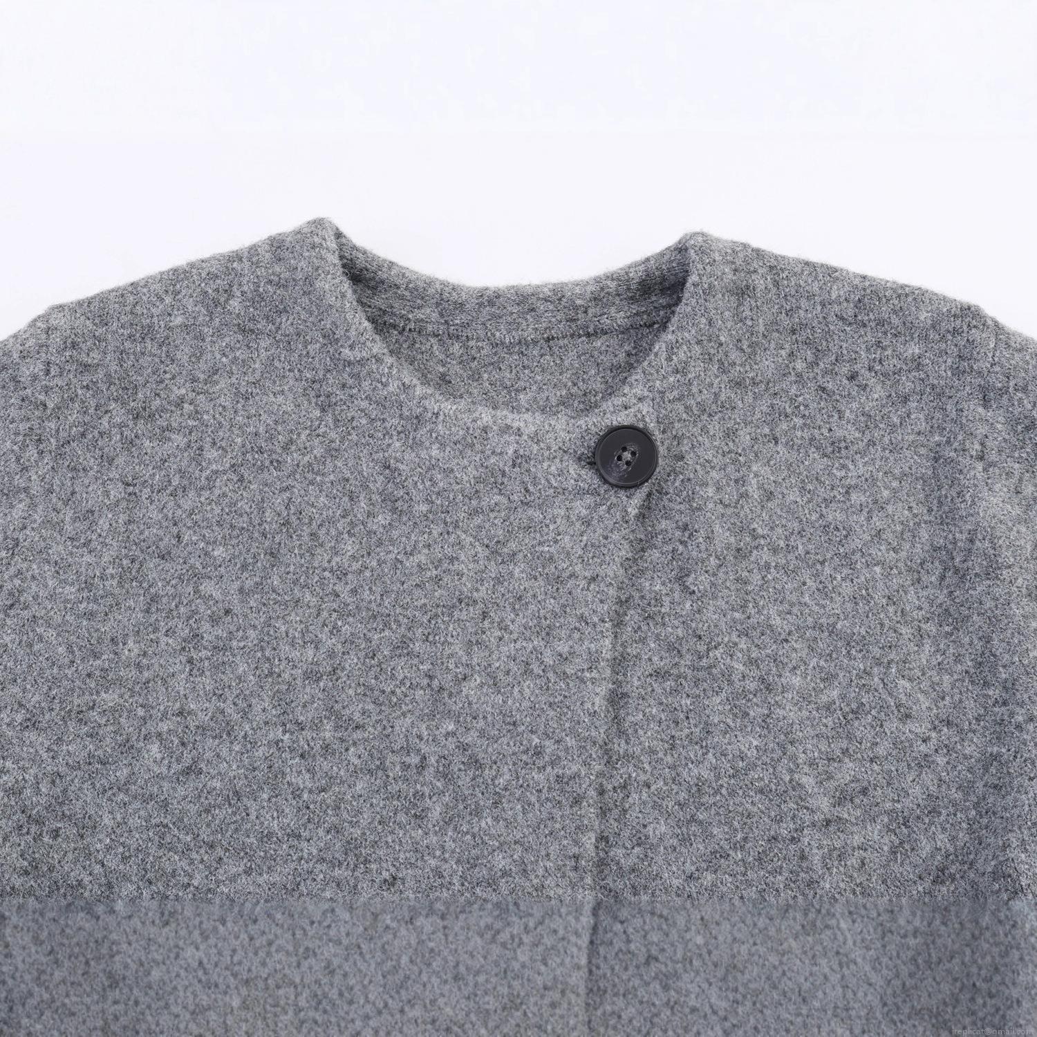 Women's Grey Woolen Texture Cape Coat Round Neck Single Button Side Tie Design Loose Long Sleeve Jacket Autumn Winter Minimalist Western Style Outerwear