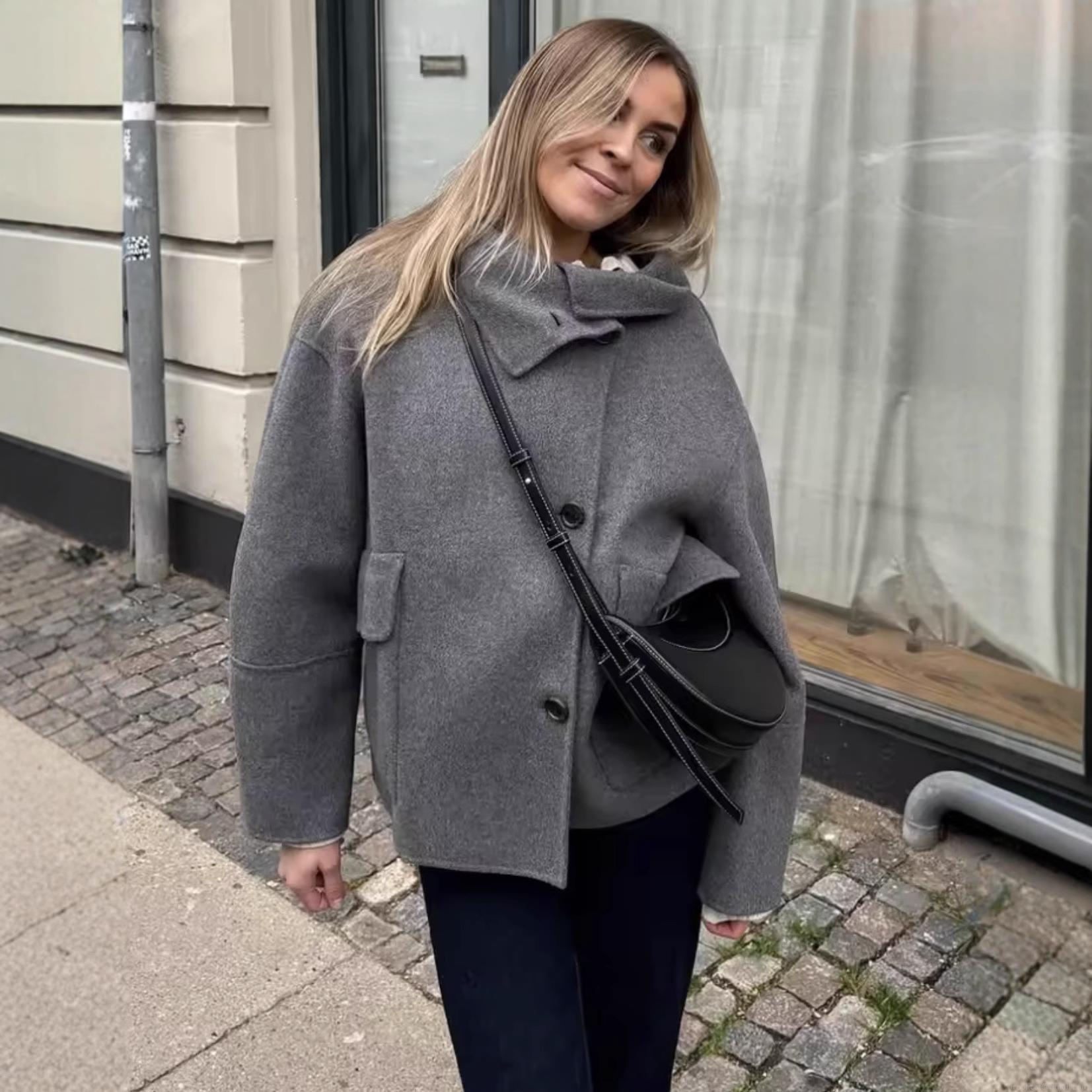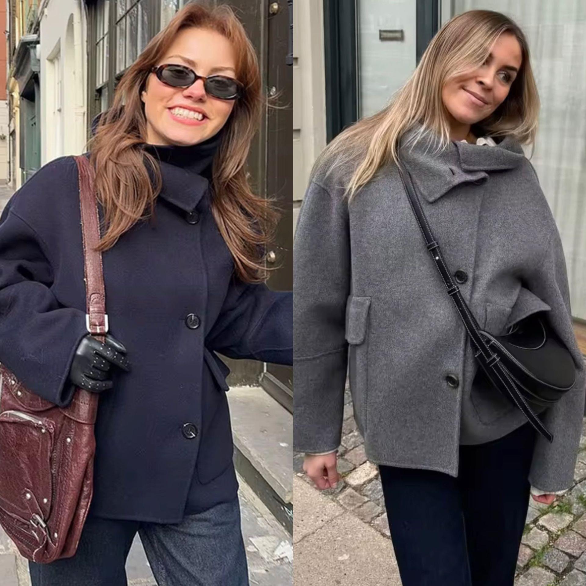 Women's Fashion Woolen Texture Jacket Zip-Up Short Coat Lapel Solid...