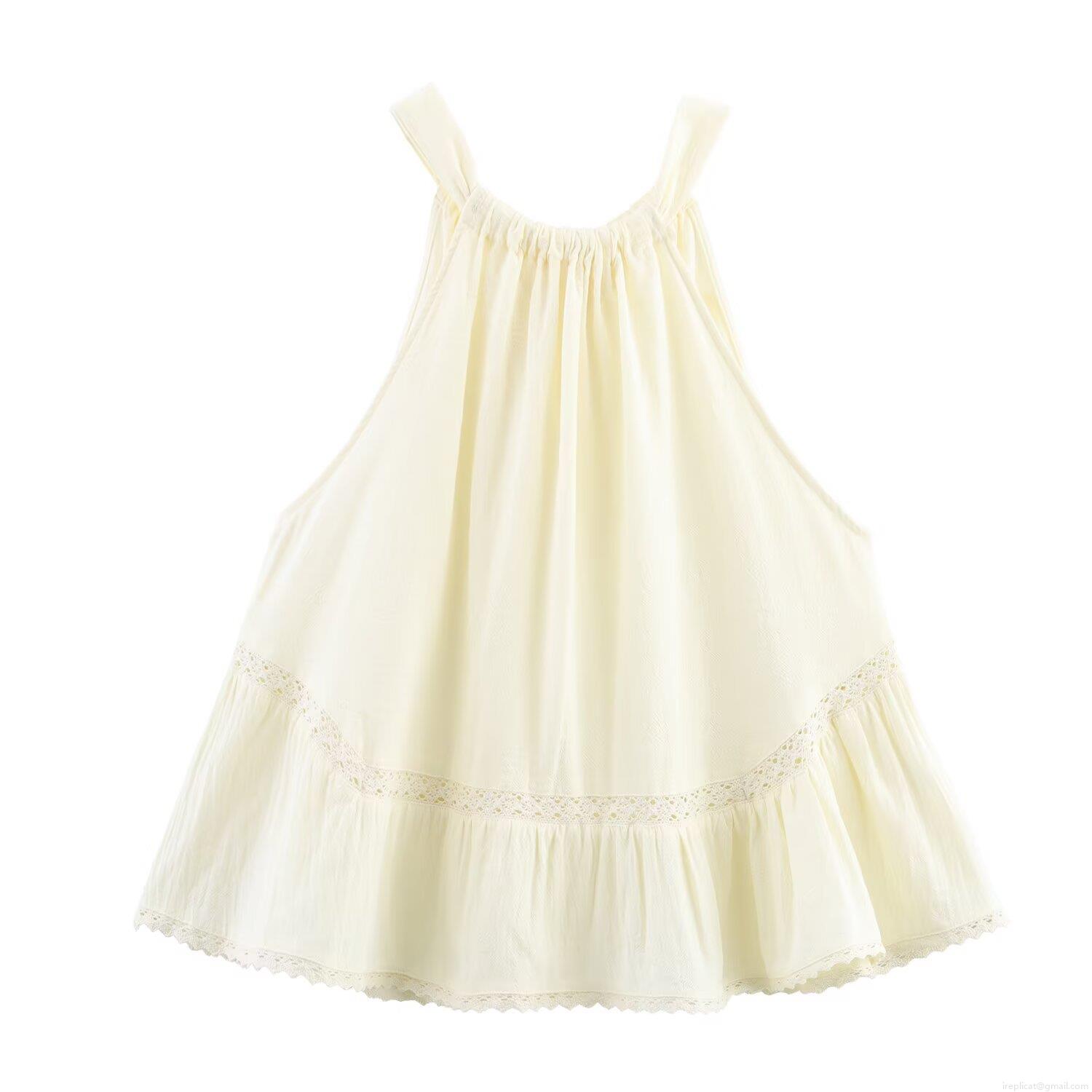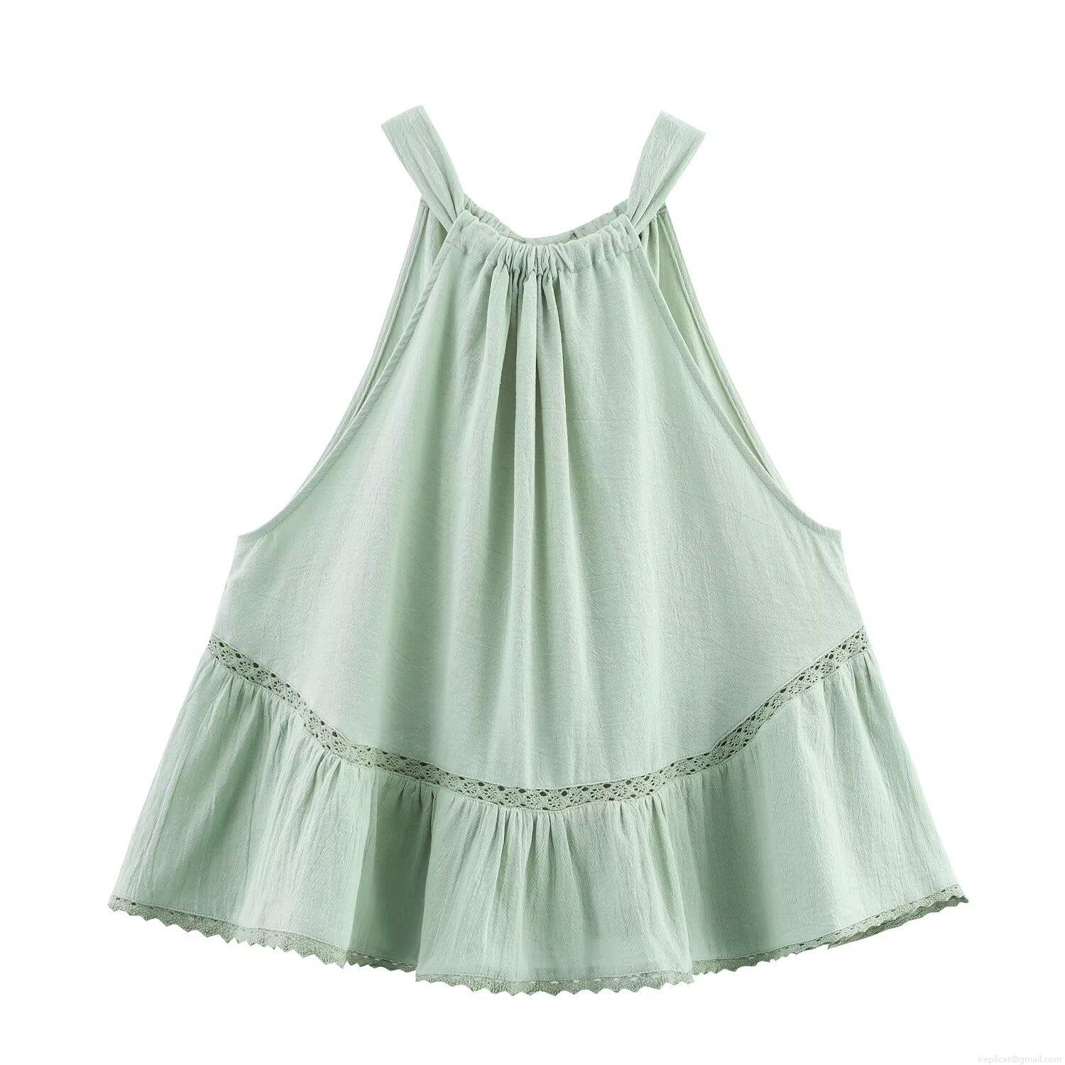 Women's Halter Neck Sleeveless Top Hollow Out Lace Patchwork Ruffle Hem Tie Up Backless Cotton Blend T-Shirt Summer Casual Streetwear Camisole