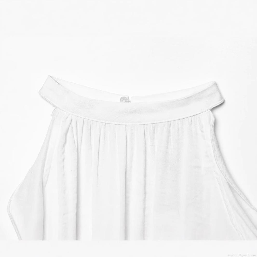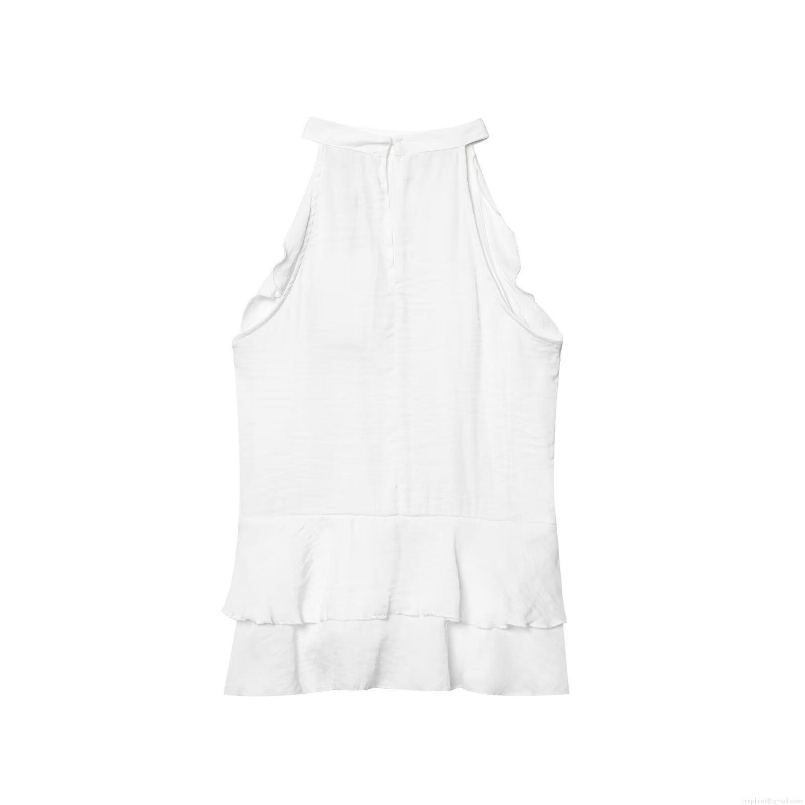 Women's Halter Neck Sleeveless T-Shirt Layered Ruffle Hem Solid White Polyester Top Summer Casual Elegant Streetwear Off-Shoulder Blouse for Women