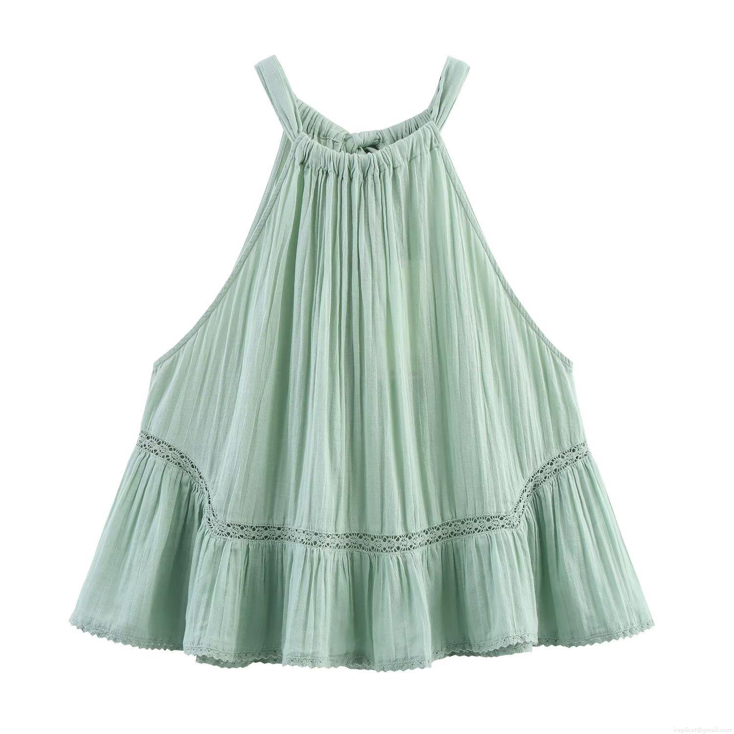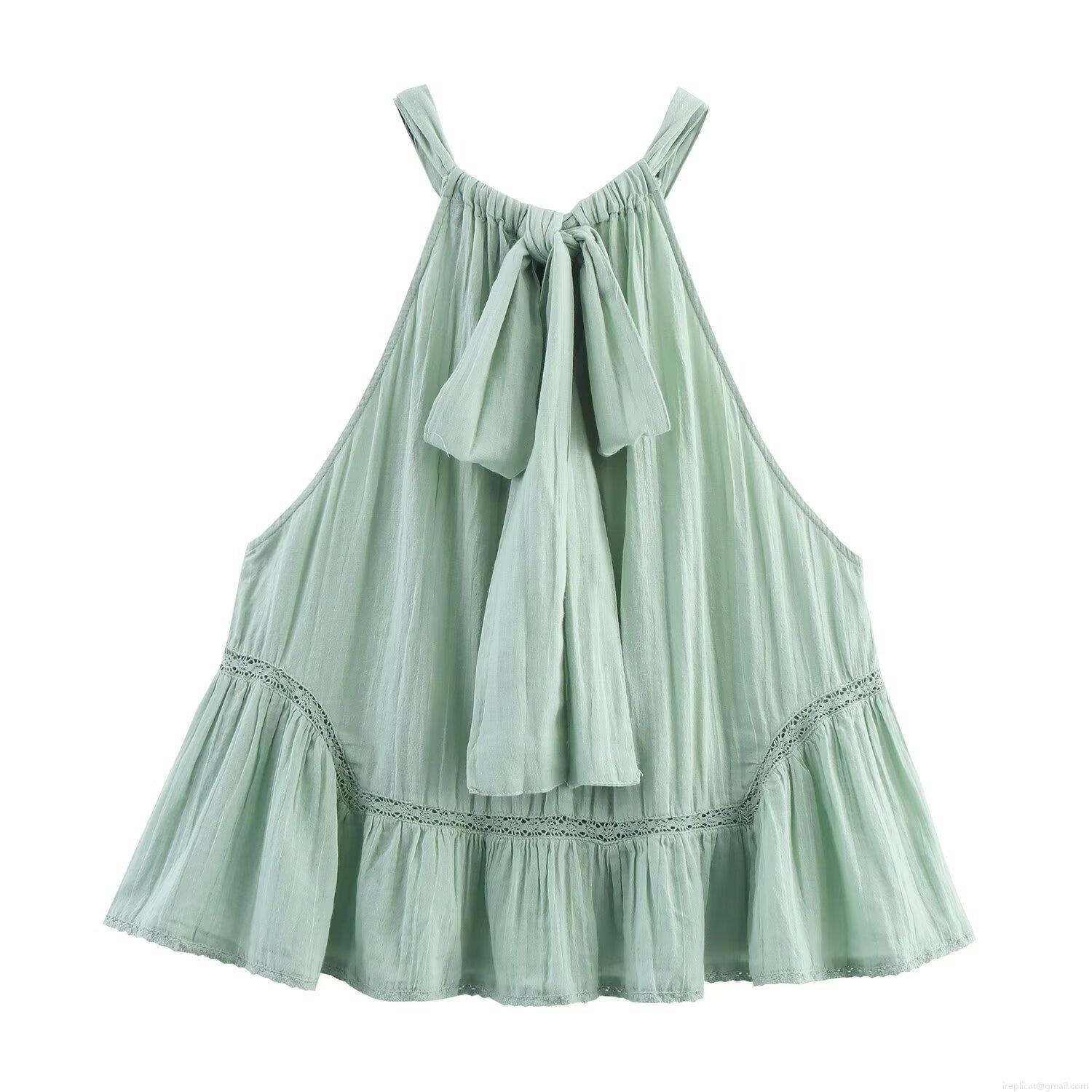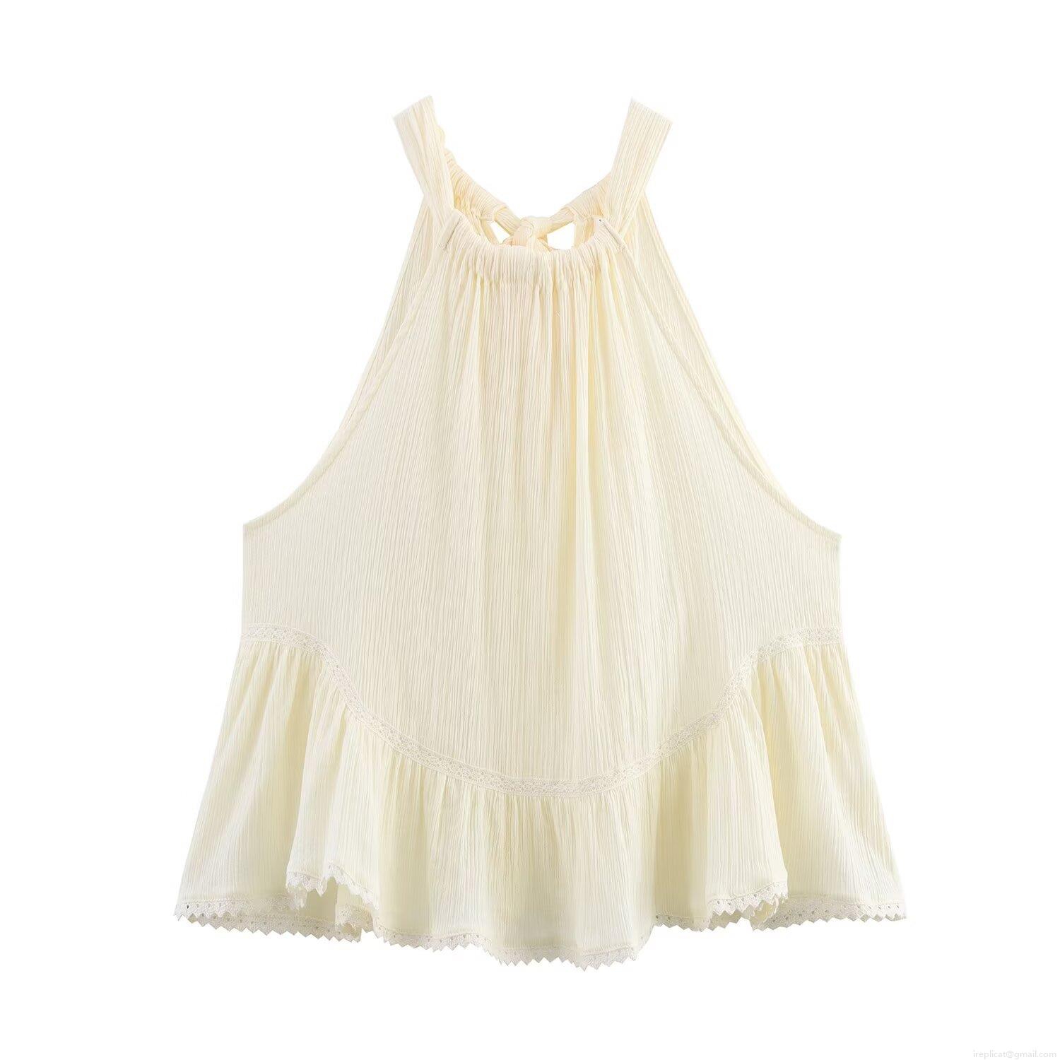 Women's Halter Neck T-Shirt Top Cotton Crinkle Lace Hollow Embroidery Tie Up Bow Backless Sleeveless Ruffle Hem Bohemian Summer Vacation Beach Street Style