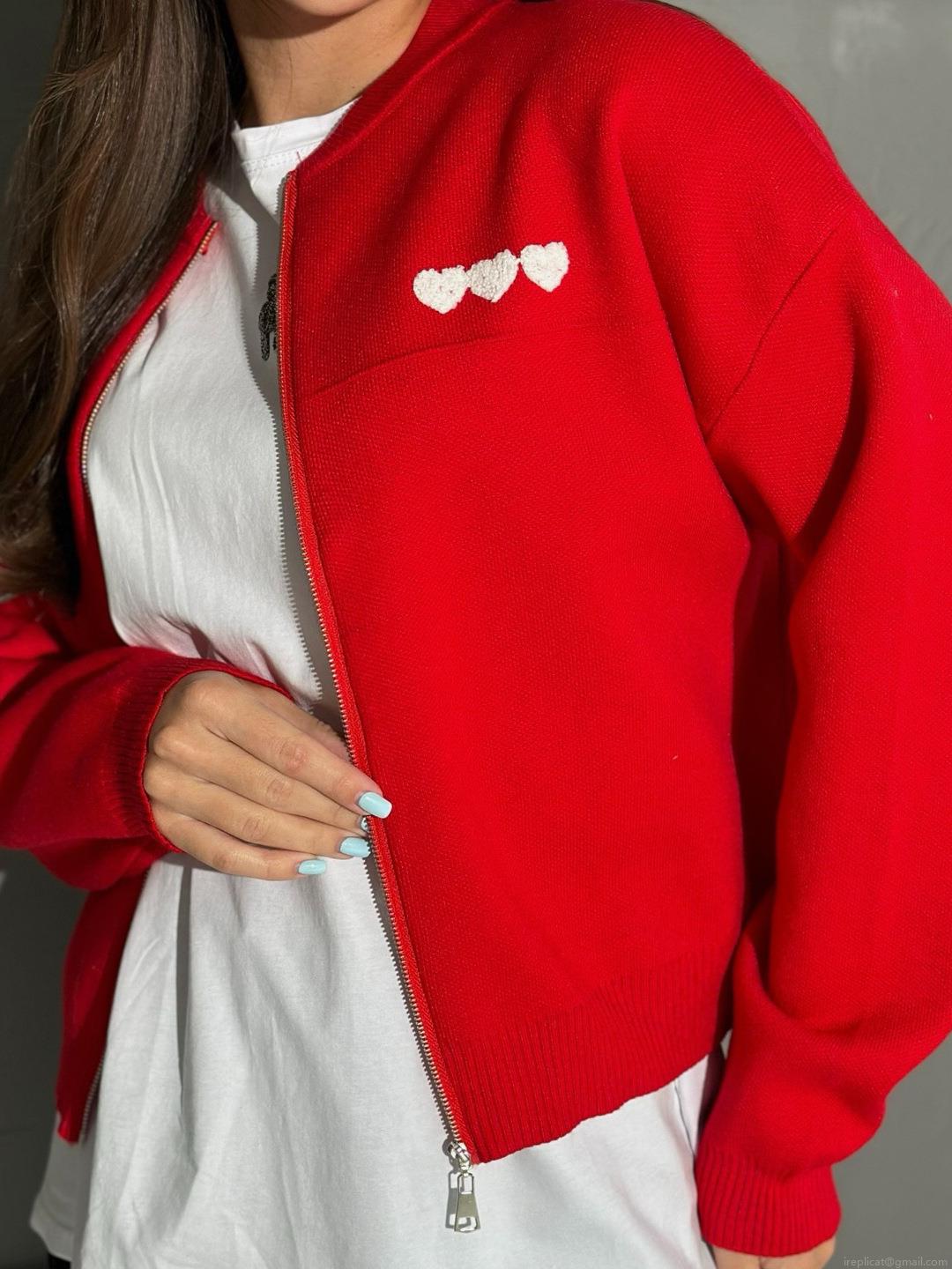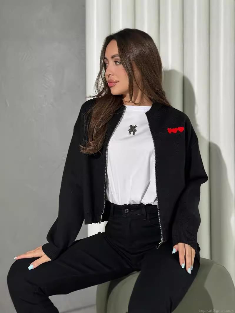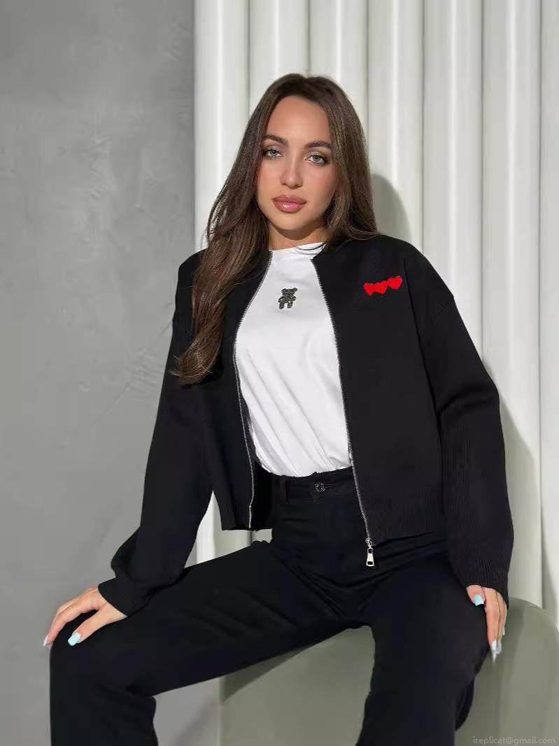 Women's Heart Embroidery Zip Up Knit Cardigan French Style Slim Fit Long Sleeve Sweater Jacket Autumn Casual Knitted Top