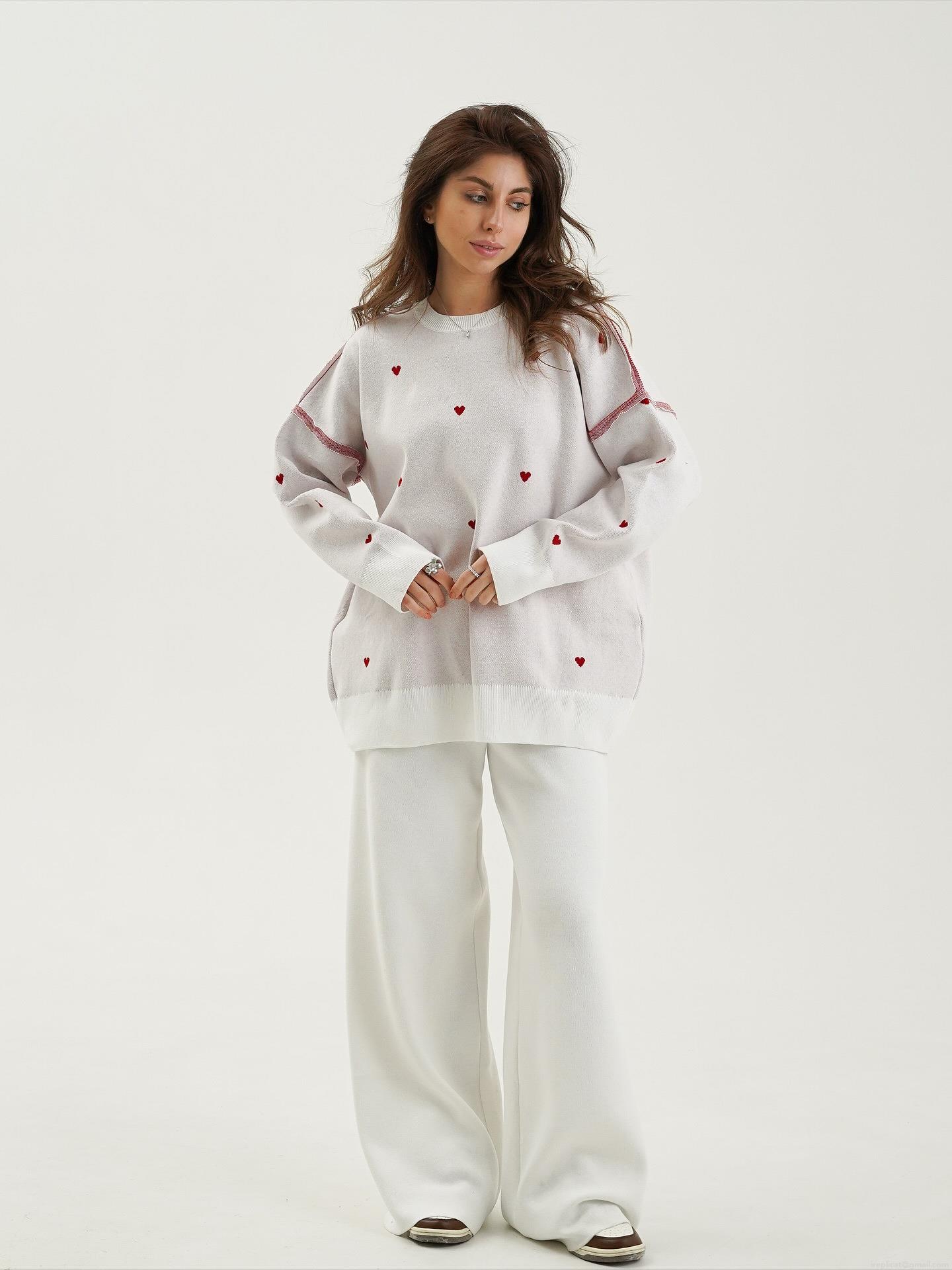 Women's Heart Pattern Knit Sweater Oversized Long Sleeve Crew Neck Pullover Top Casual Fall Winter Sweetheart Knitwear Streetwear Ladies Jumpers