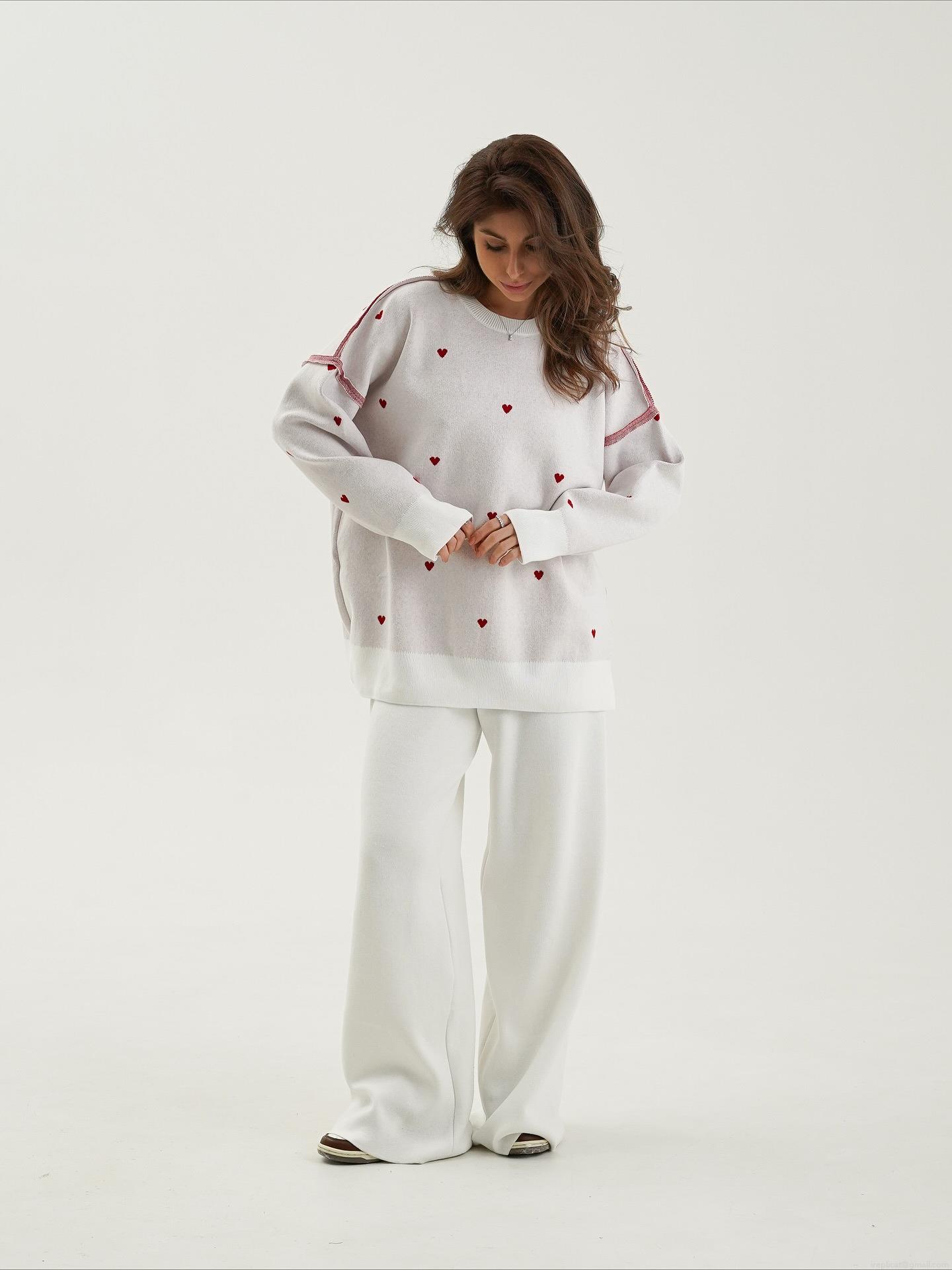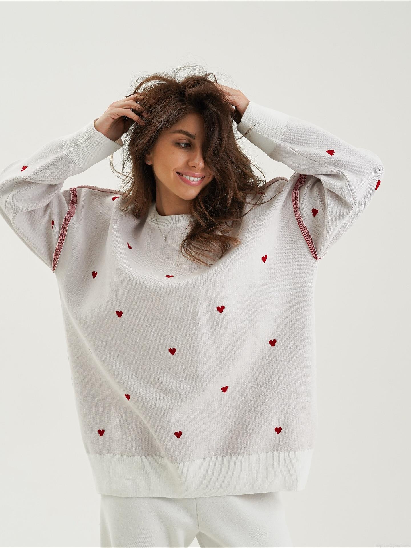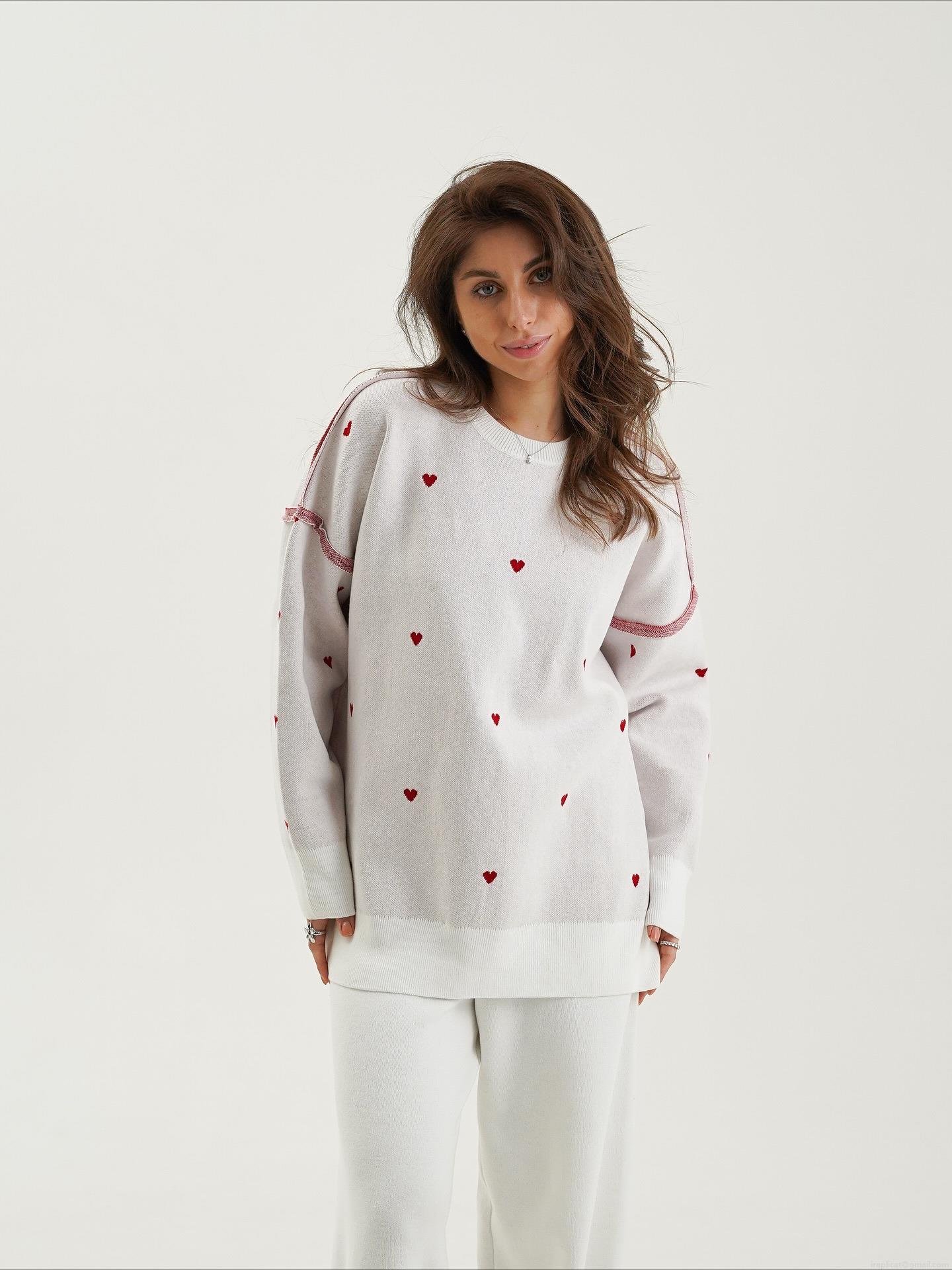 Red Heart, Collage, Niche Fashion, Heart Jacquard, Drop Shoulder Design