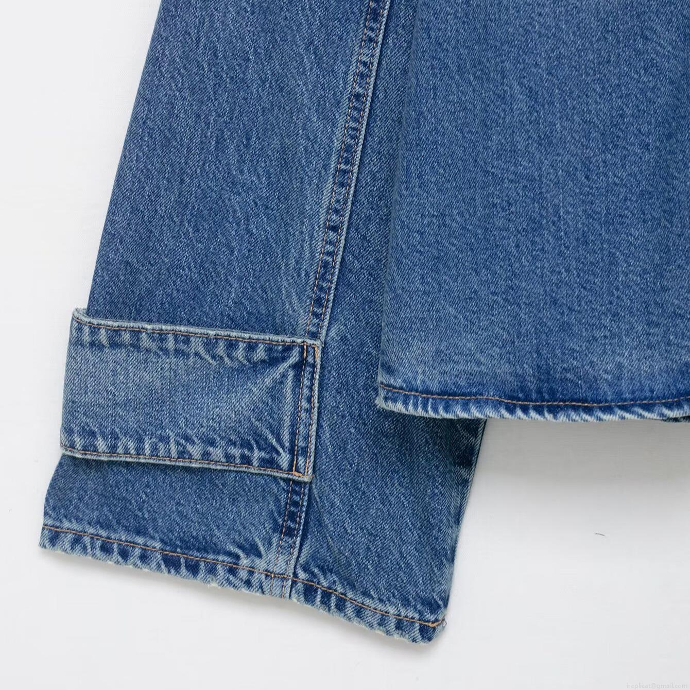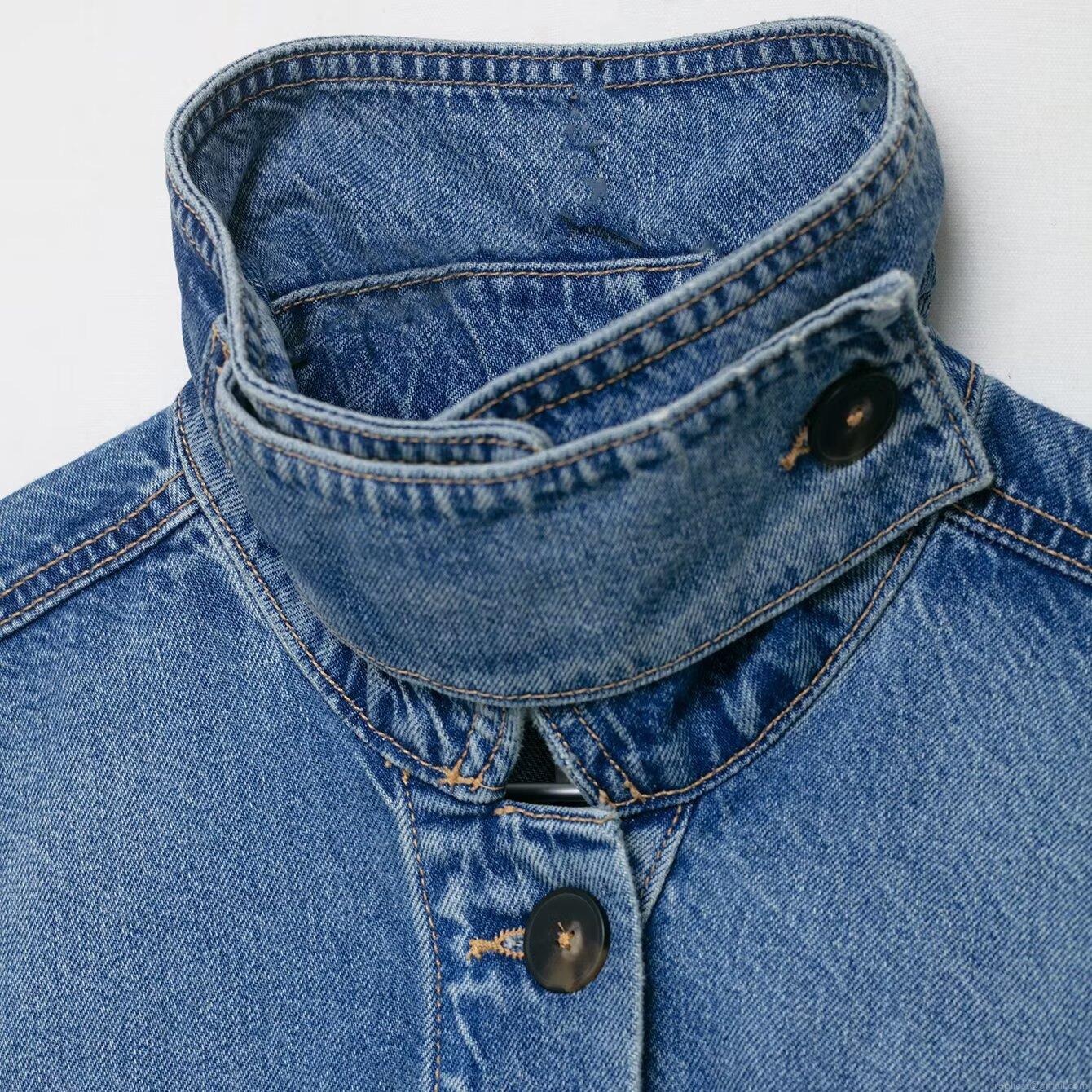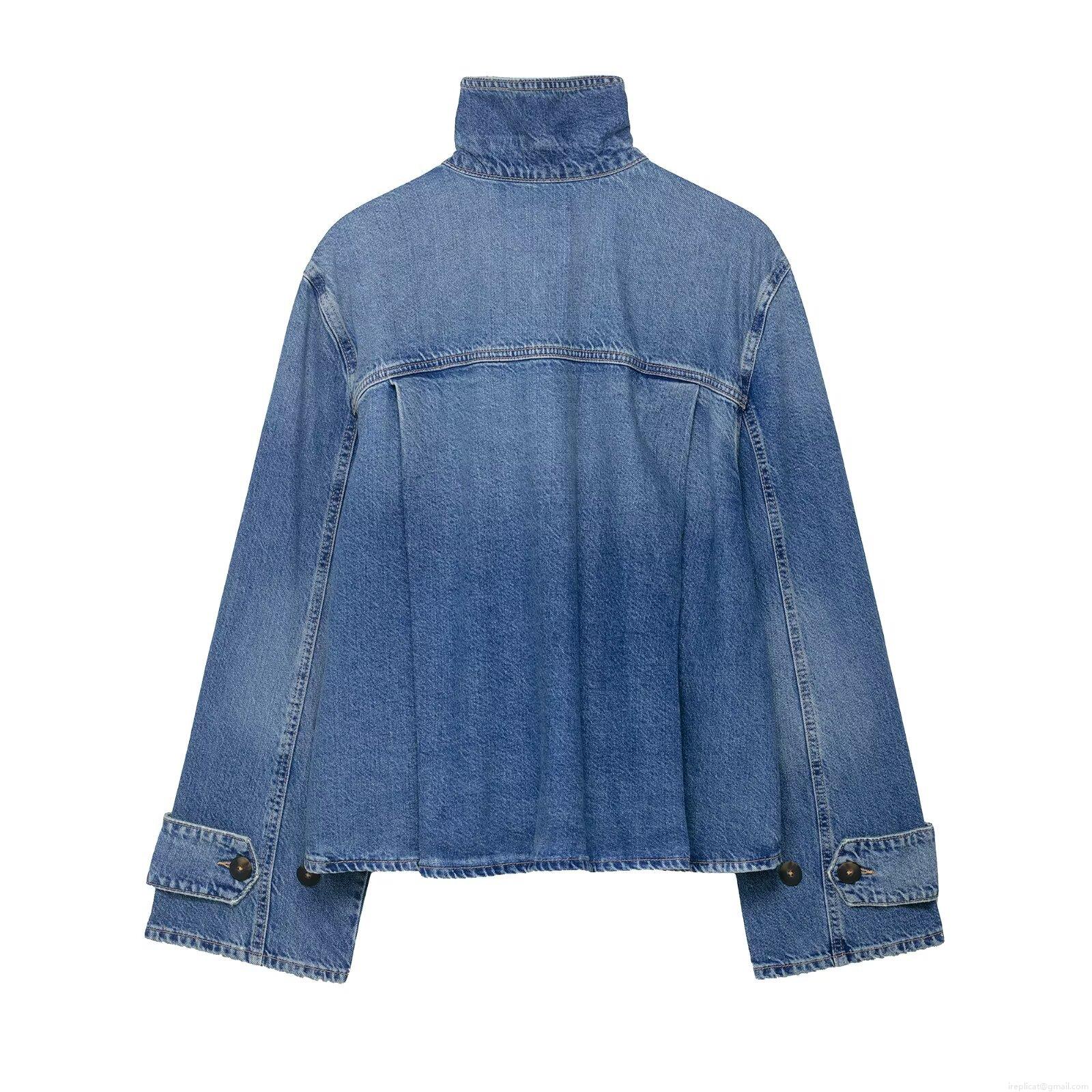 Women's High Neck Denim Jacket Fashion Casual Loose Long Sleeve Wash Denim Polyester Coat For Women Spring Autumn Outerwear Top