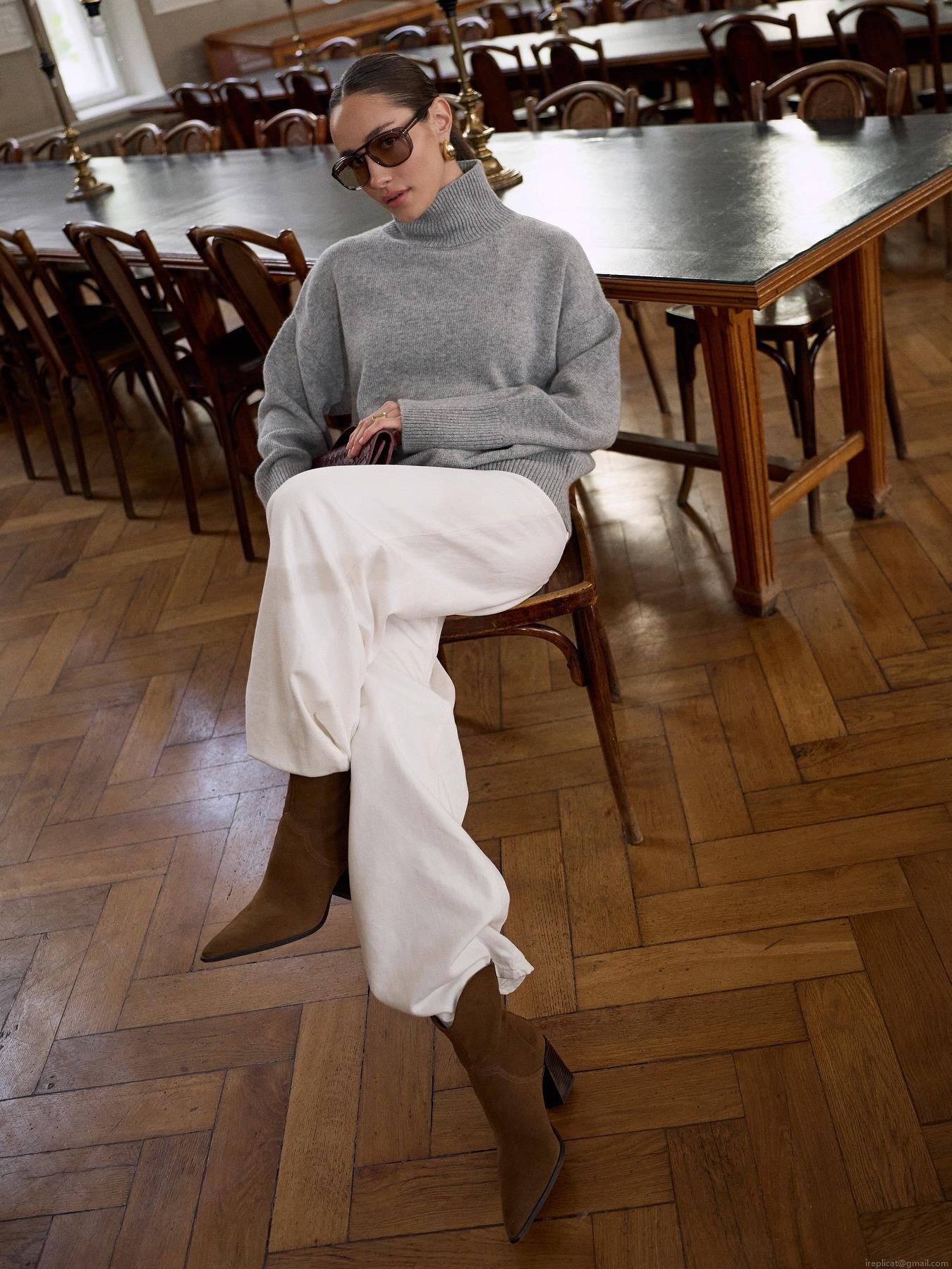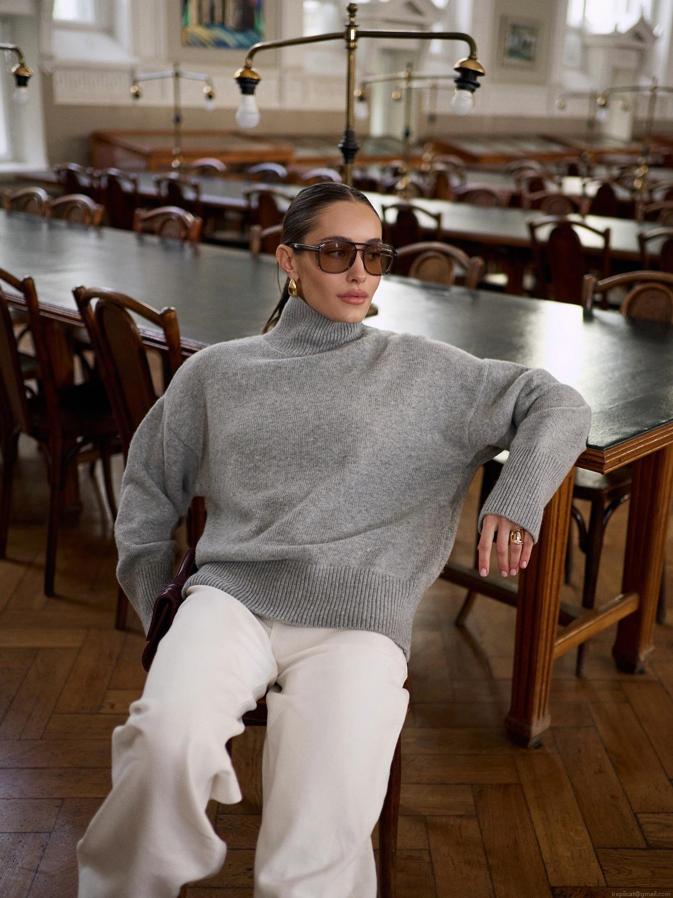 Women's High Neck Knit Sweater 80% Cotton Blend Loose Fit Long Sleeve Pullover Autumn Winter Warm Casual Solid Color Top For Ladies