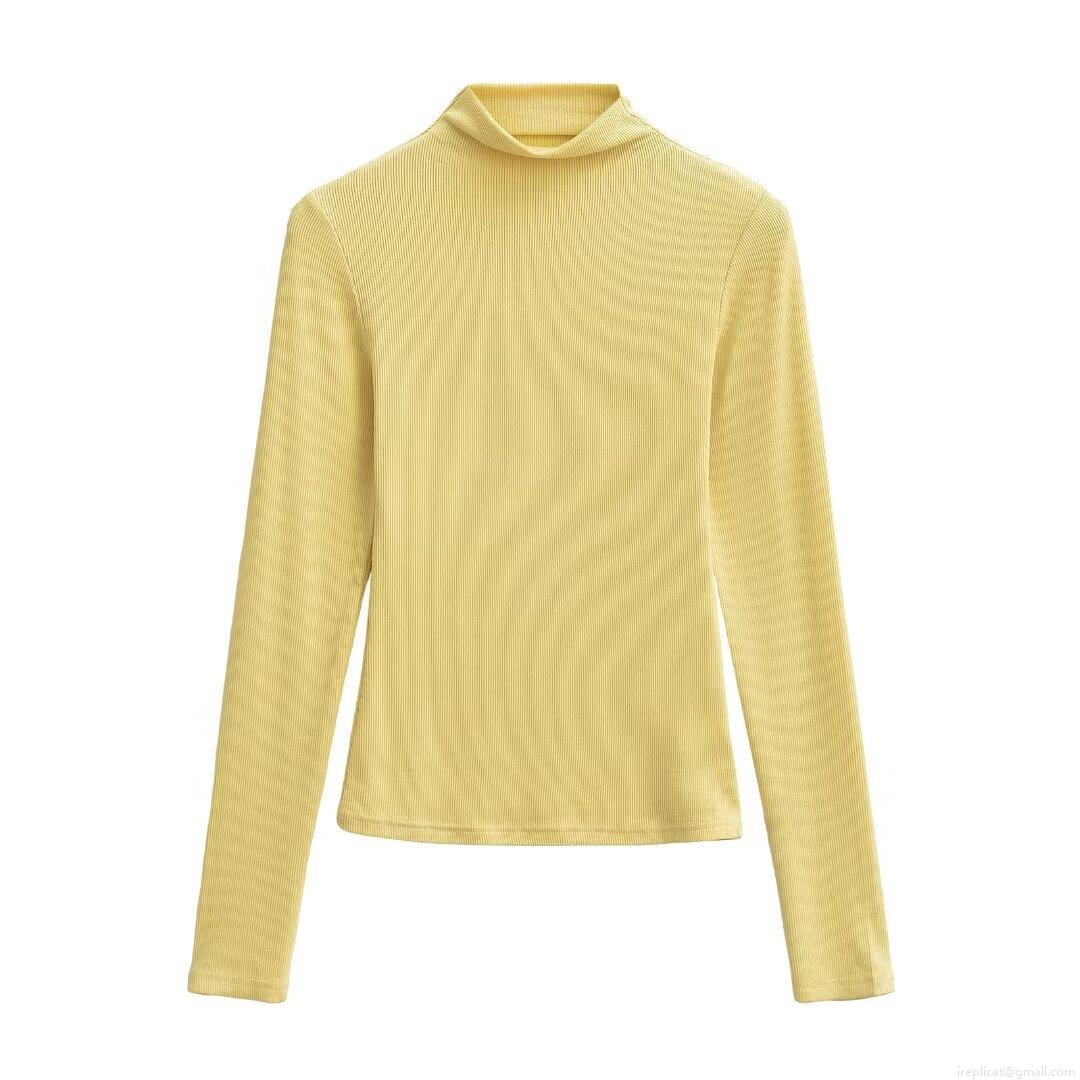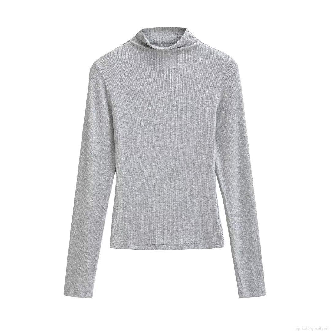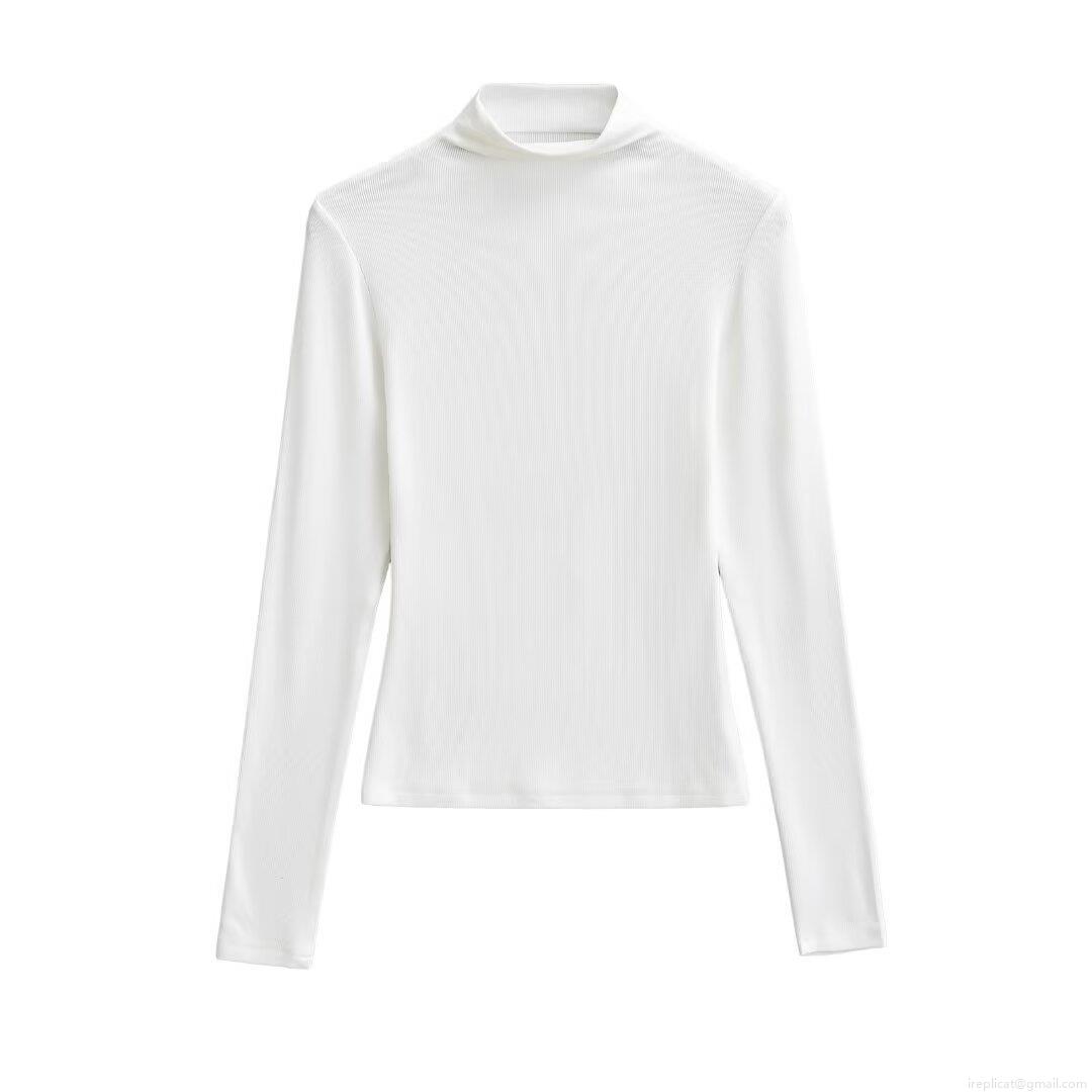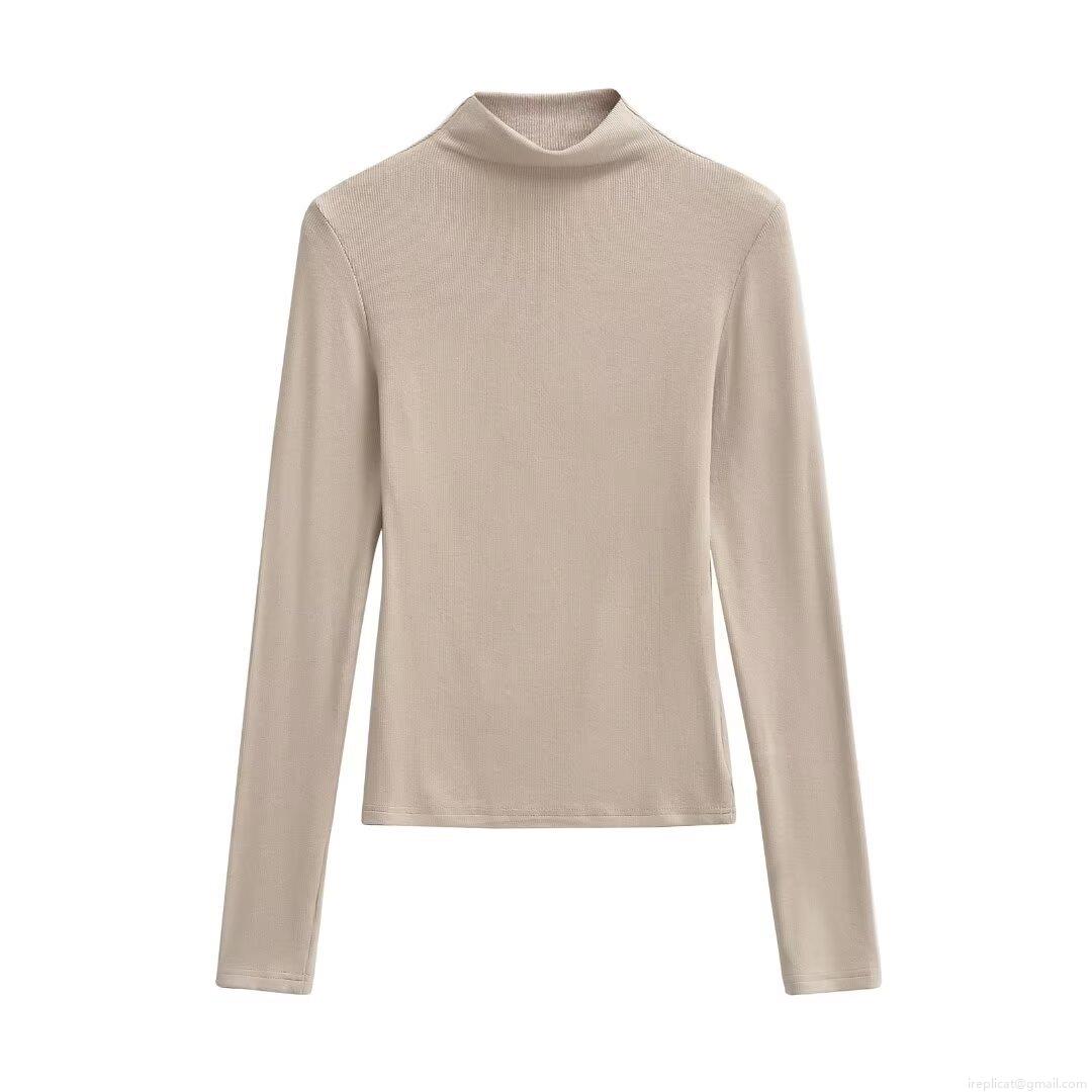 Women's High Neck Long Sleeve T-Shirt Ribbed Knit Slim Fit Base Layer Top Solid Color Casual Autumn Winter Streetwear Chic Tee
