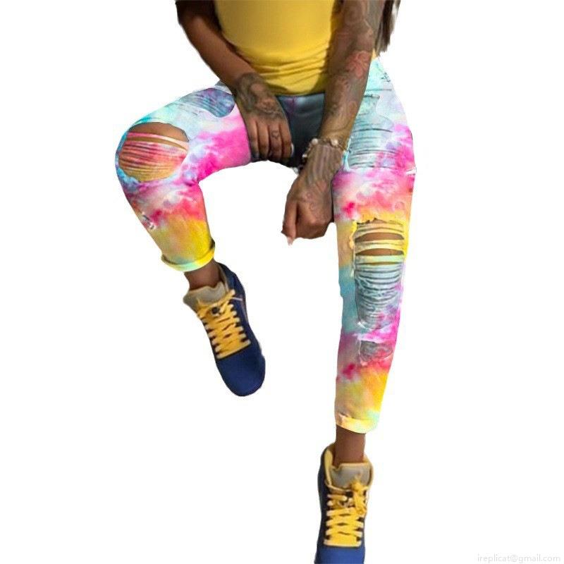 Women's High Stretch Tie-Dye Ripped Skinny Jeans Cotton Blend Denim Distressed Slim Fit High Waisted Long Pants For Streetwear Party Casual Aesthetic