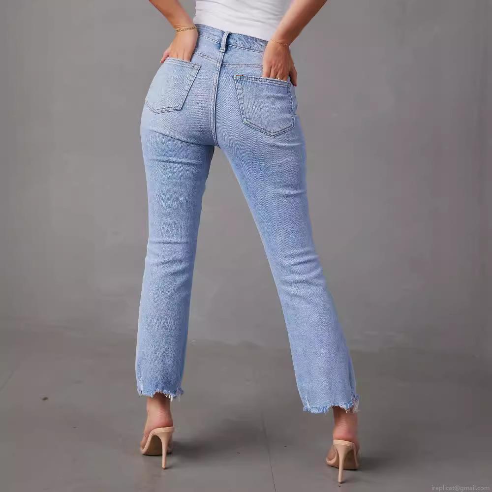 Women's High Waisted Ripped Straight Leg Denim Jeans Distressed...