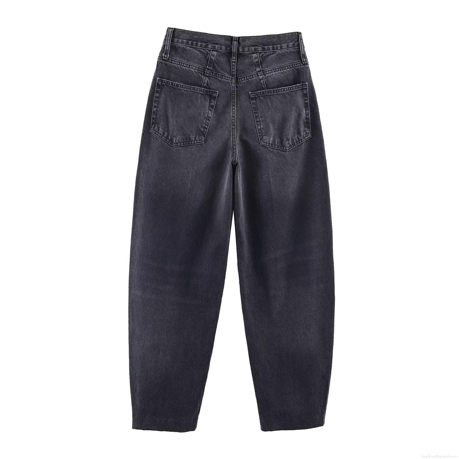 Women's High Waist Barrel Jeans Vintage Washed Denim Loose Fit Pants Casual Winter Bottoms For Women