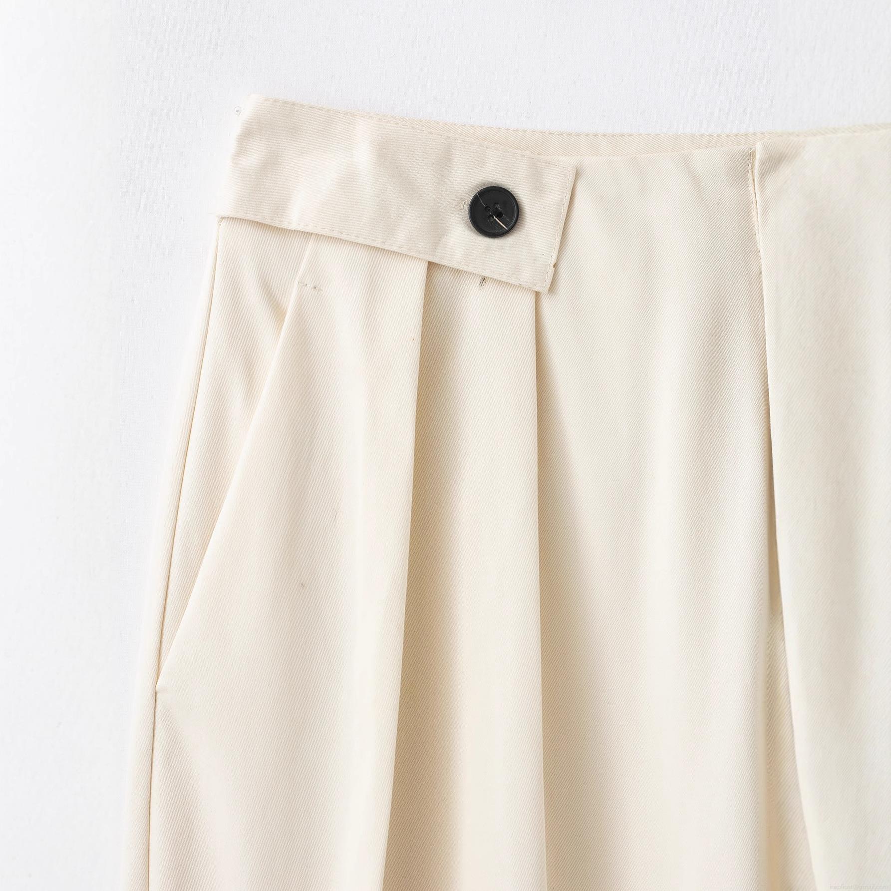 Women's High Waist Casual Wide Leg Pants Fashion Decorative Button Pleated Trousers Creamy White Straight Trousers For Office Daily Wear