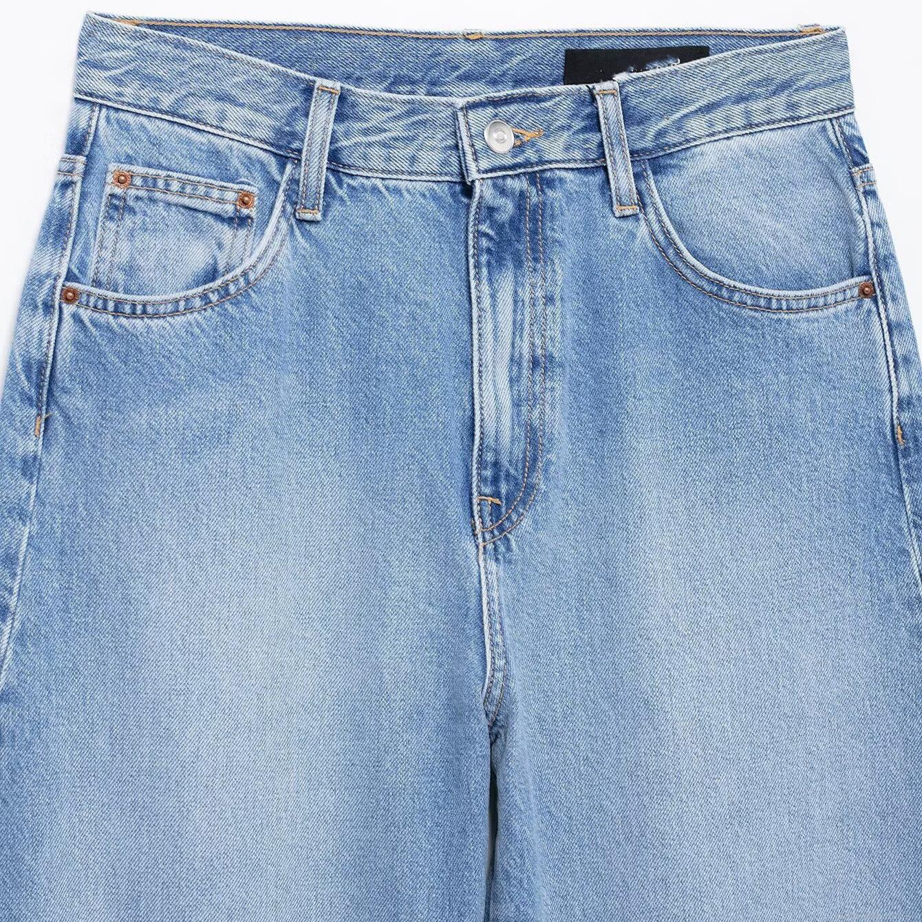 Women's High Waist Denim Jeans Fashion Curved Silhouette Washed Cotton Blend Pants Casual Loose Streetwear Trousers For Women Lady Blue