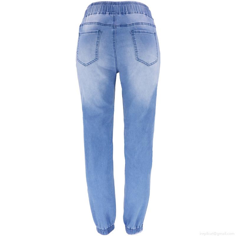 Women's High Waist Denim Jogger Jeans Cotton Blend Stretch Elastic Waist Drawstring Tapered Pants with Pockets Casual Streetwear Denim Joggers