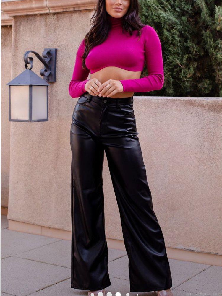 Women's High Waisted Faux Leather Straight Leg Pants Trendy PU...