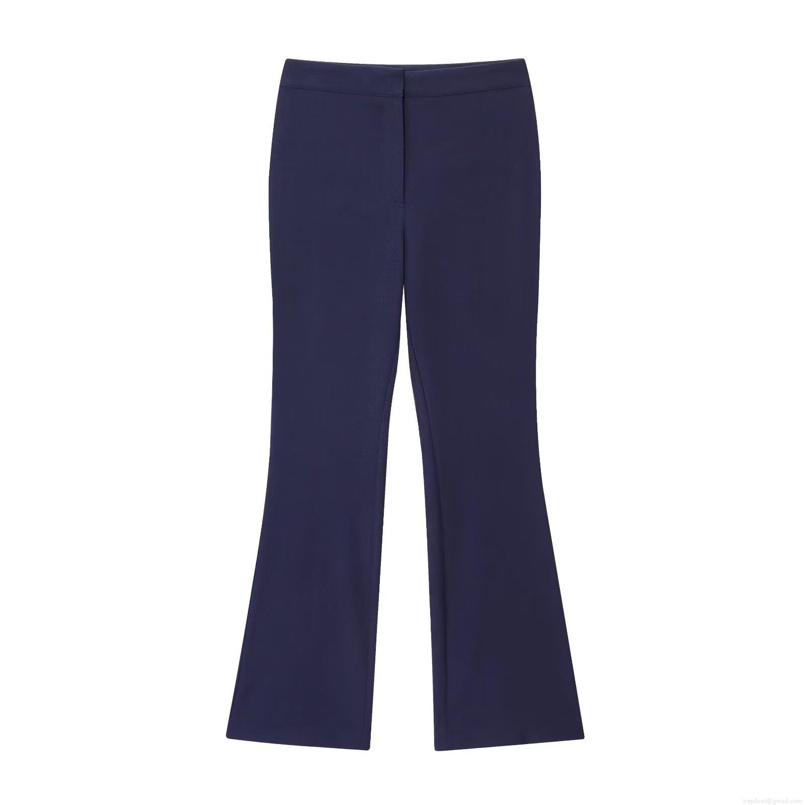 Women's High Waist Flare Pants Polyester Twill Solid Color Slim Fit Office Casual Elegant Wide Leg Long Trousers For Fall Streetwear