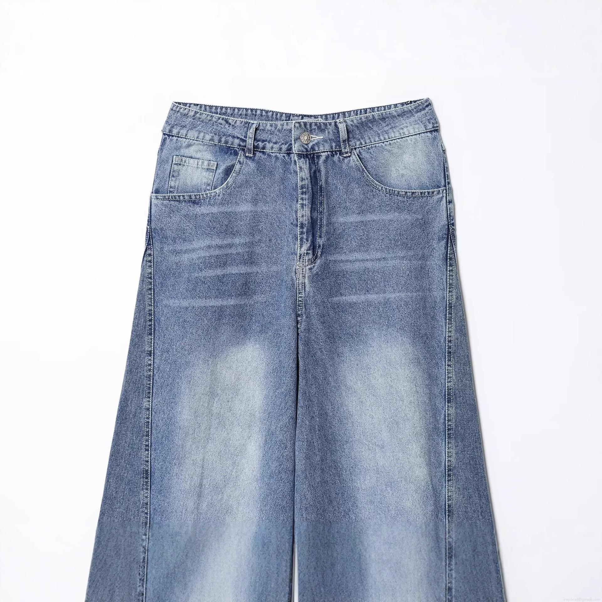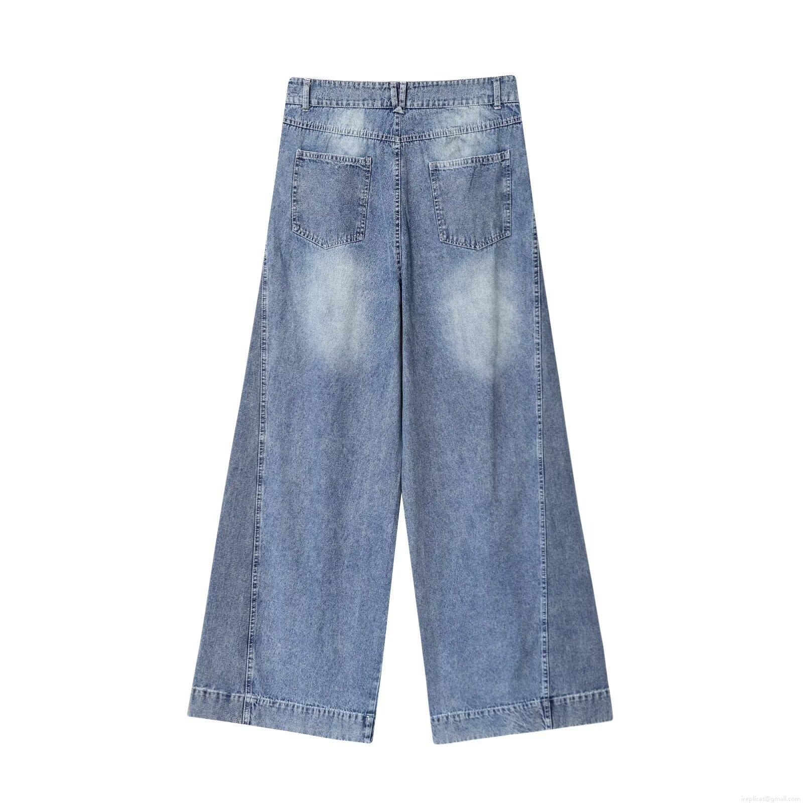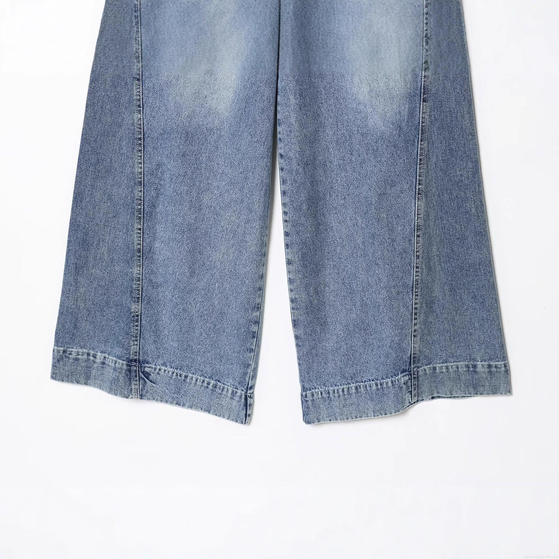 Women's High Waist Patchwork Denim Jeans Wide Leg Straight Casual Washed Blue Trousers Vintage Streetwear Denim Pants for Women
