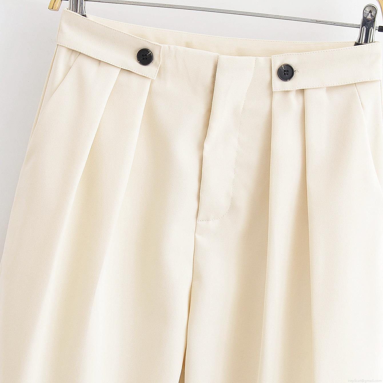 Solid Color, High-waisted, Button Decoration, Pleated Design