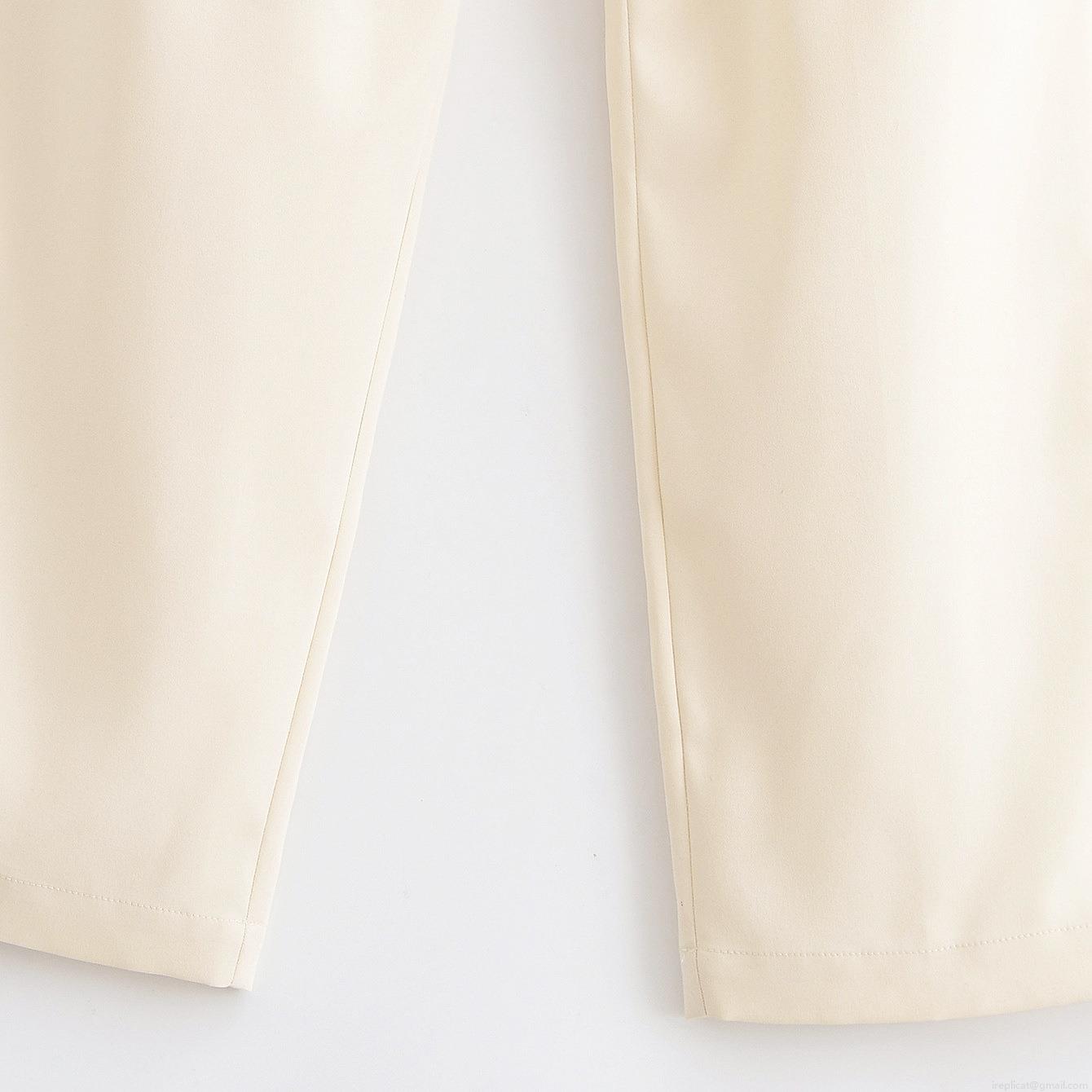 Women's High Waist Pleated Wide Leg Trousers Elegant Creamy White Solid Color Commute Dress Pants With Button Decor Side Pockets
