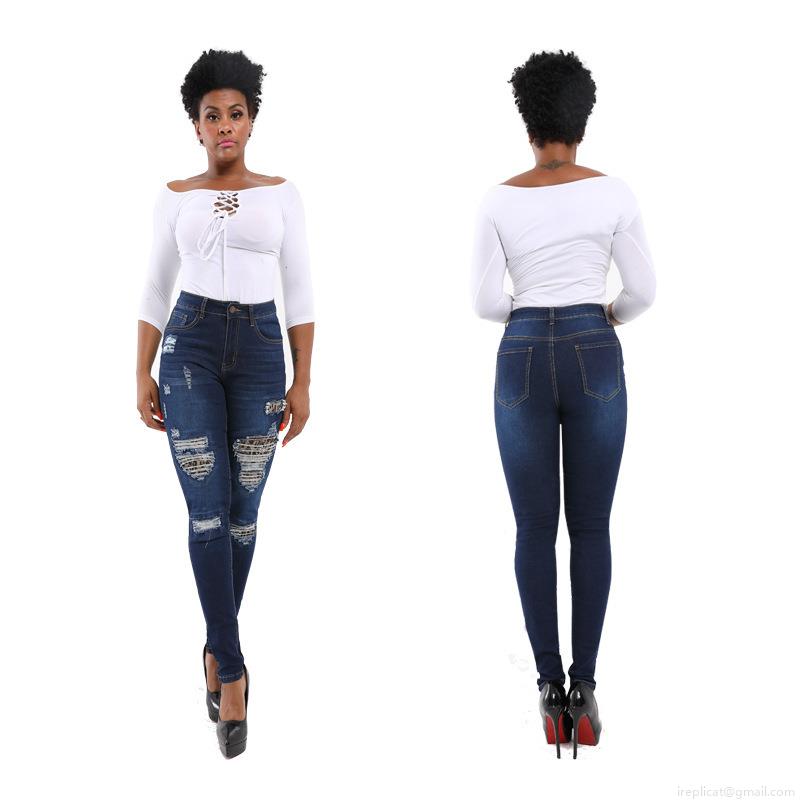 Women's High Waist Ripped Skinny Jeans High Stretch Cotton Denim Leopard Patch Distressed Pencil Pants For Casual Streetwear Women