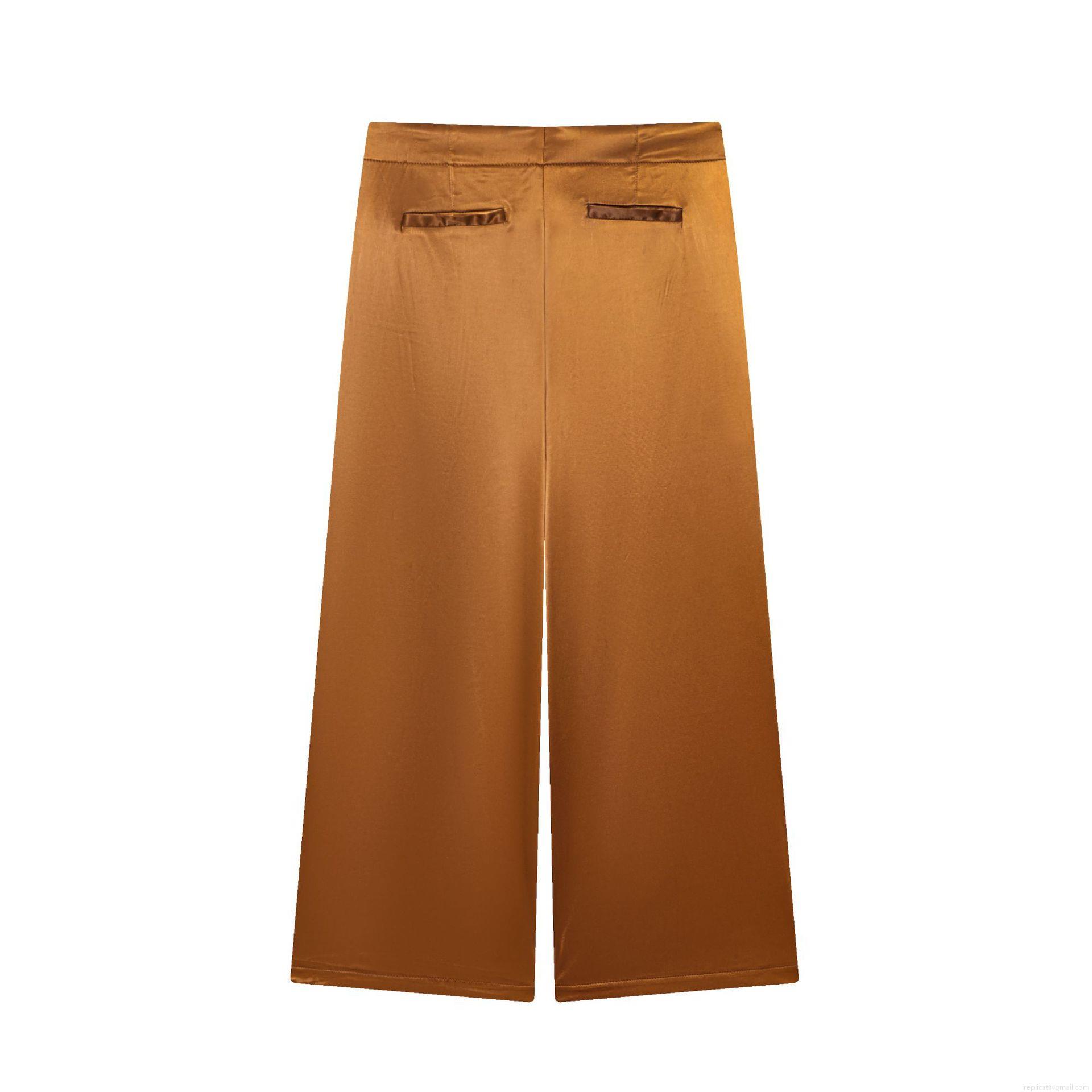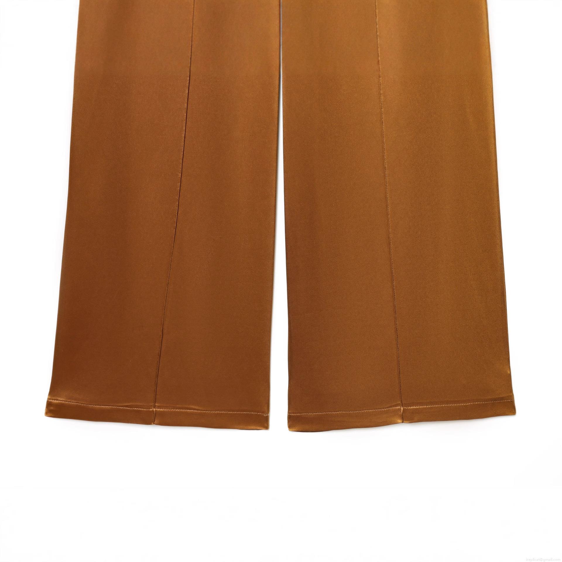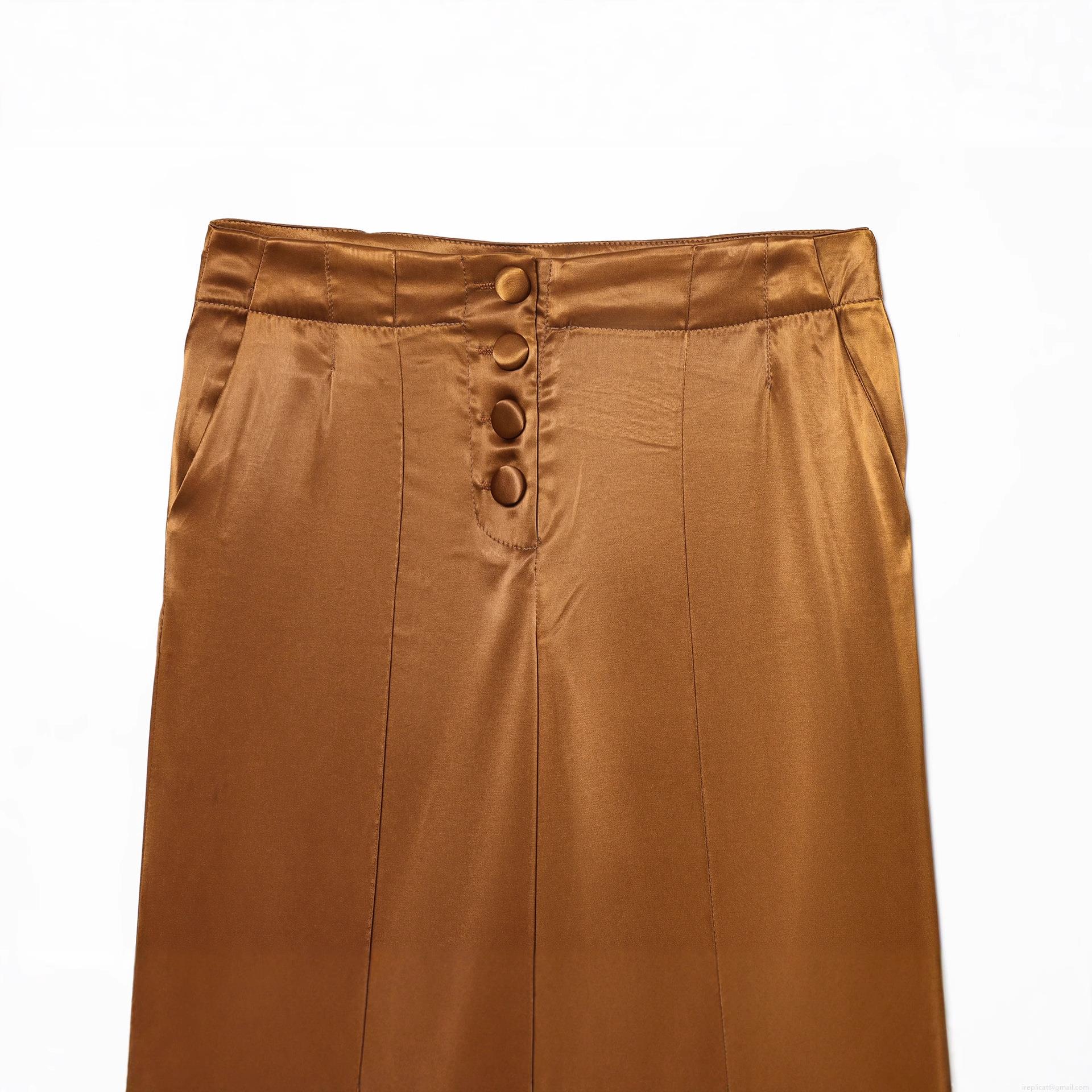 Women's High Waist Satin Wide Leg Pants Button Front Bronze Silk Palazzo Trousers Elegant High Rise Flowy Long Pants for Office Party Summer