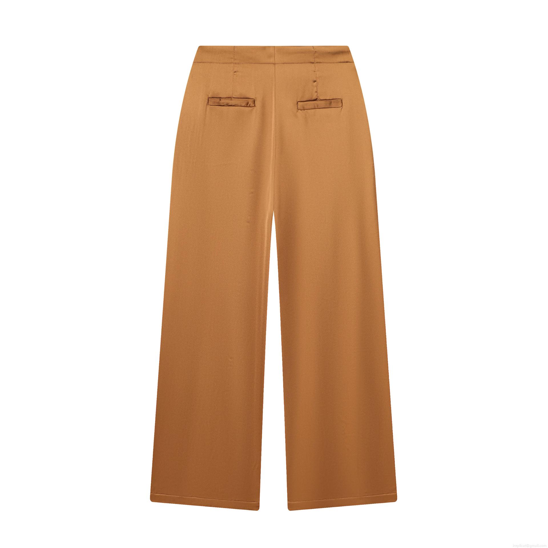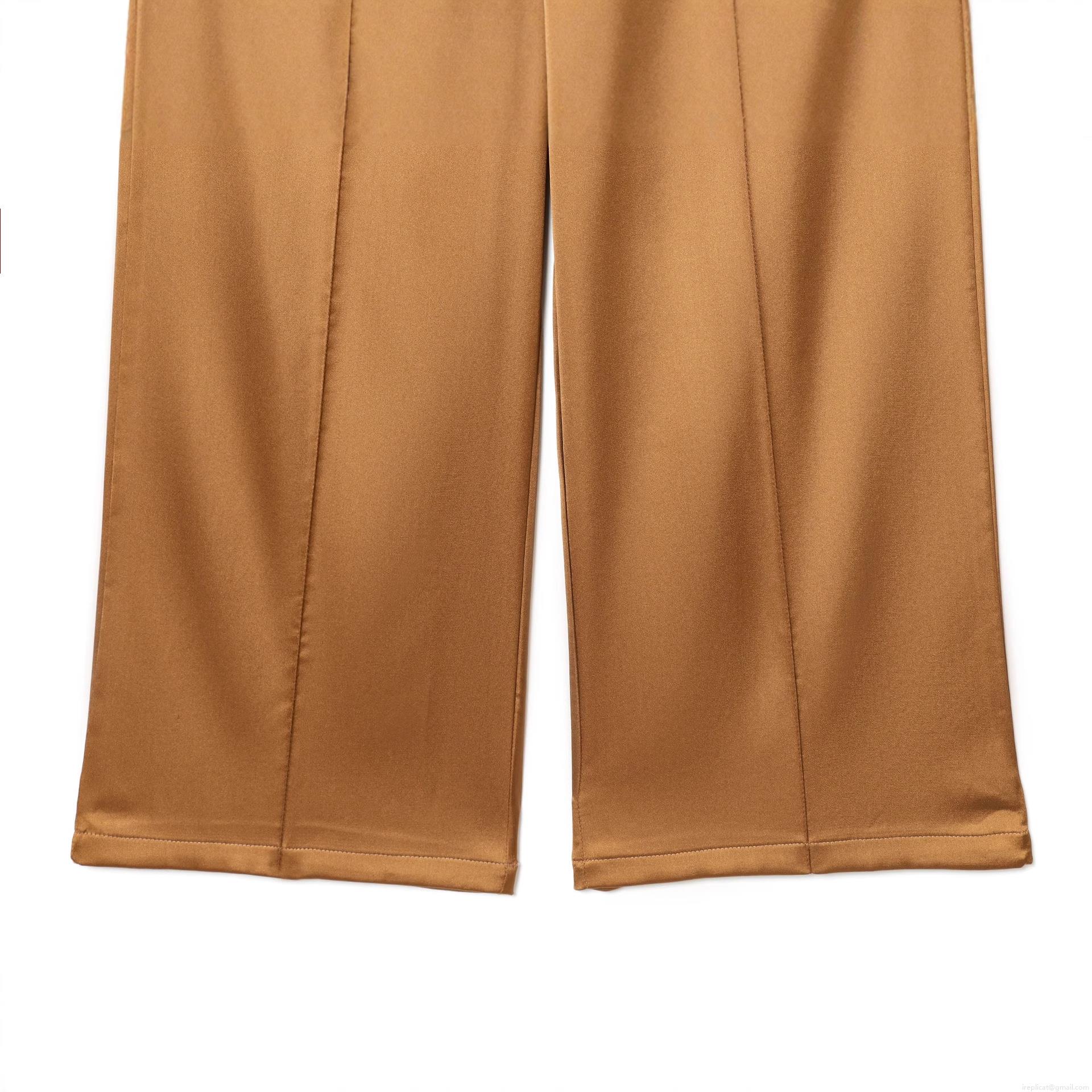 Women's Fashion Loose Wide Leg Casual Pants Solid Deep Brown Straight...