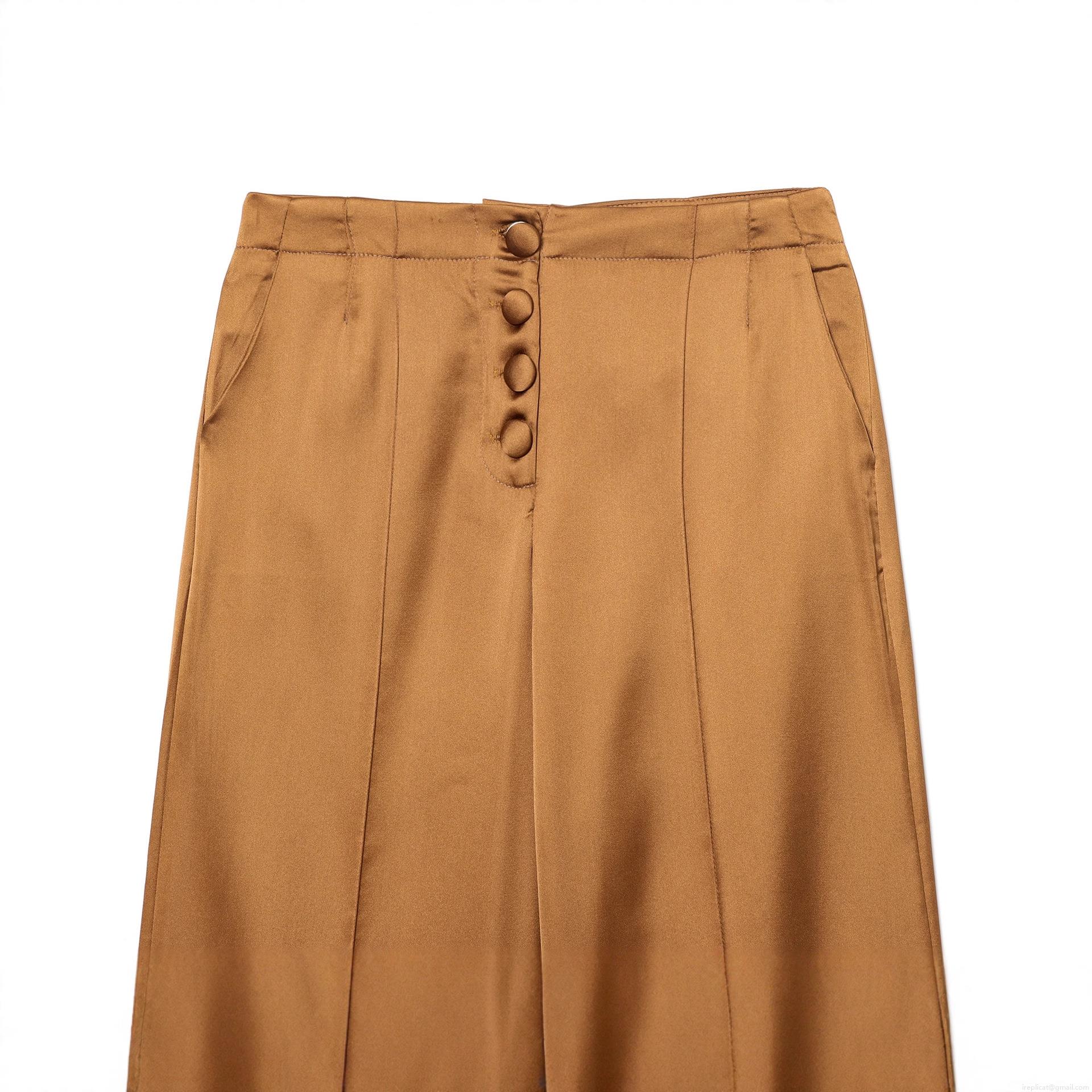 Women's High Waist Satin Wide Leg Pants Elegant Multi Button Straight Trousers Solid Color Glossy Flowy Long Culottes For Casual Party Office