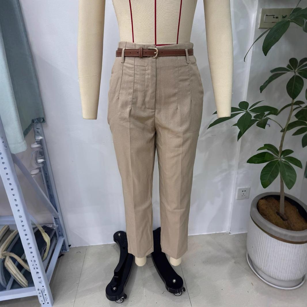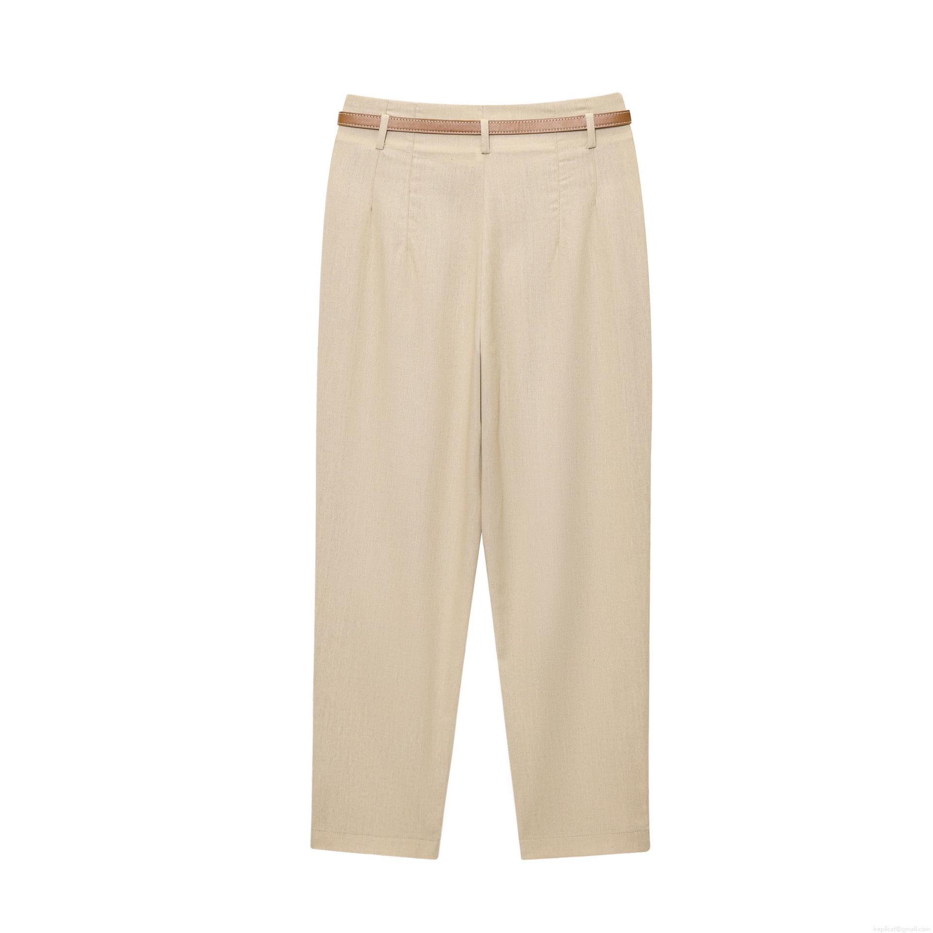 Women's High Waist Straight Leg Casual Pants With Brown Belt Khaki Summer Vacation Cotton Linen Blend Trousers For Women Elegant Office Trousers