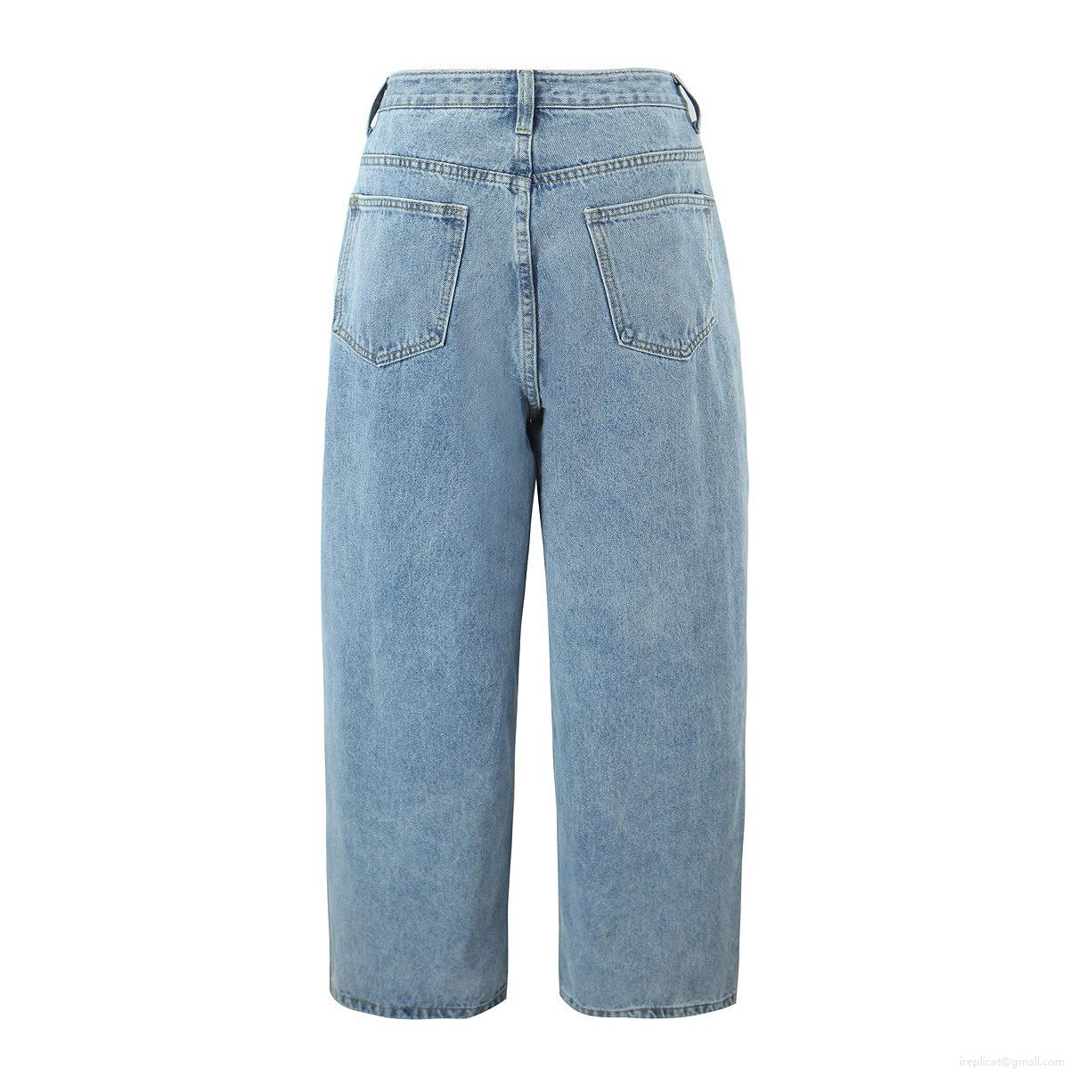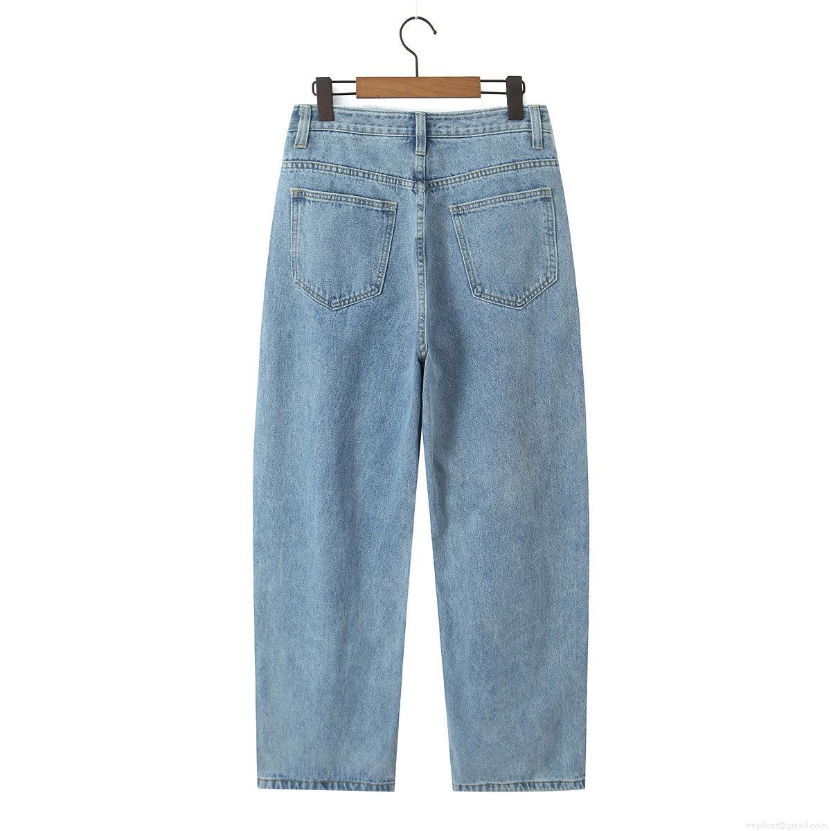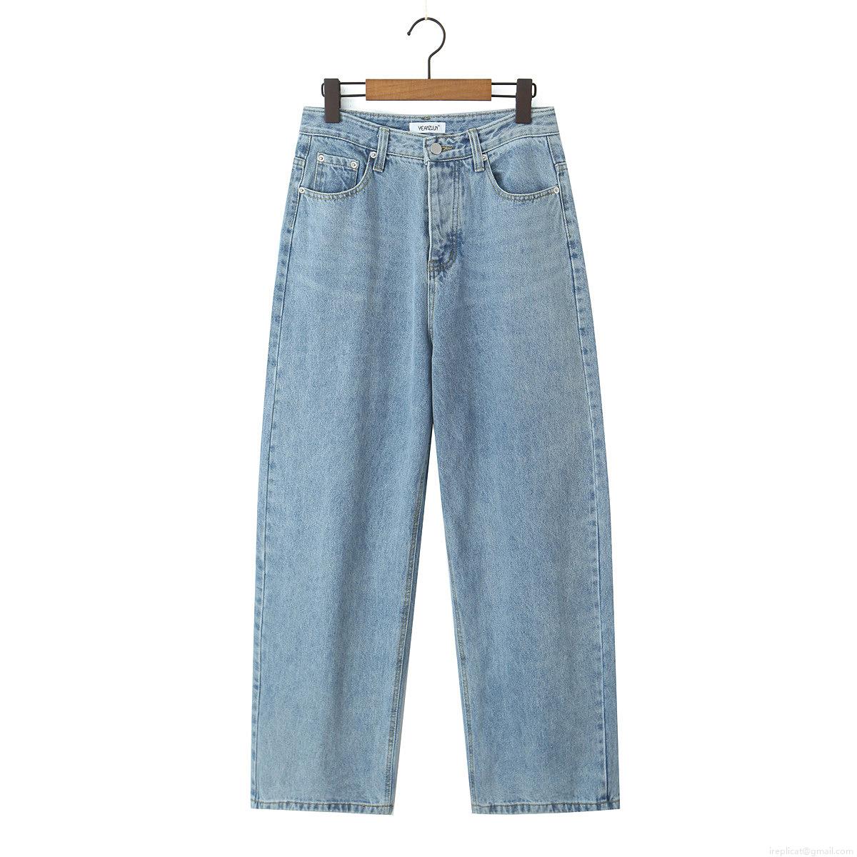 Women's High Waist Straight Leg Denim Jeans 2025 Spring Casual Wide Leg Washed Blue Streetwear Long Trousers For Women