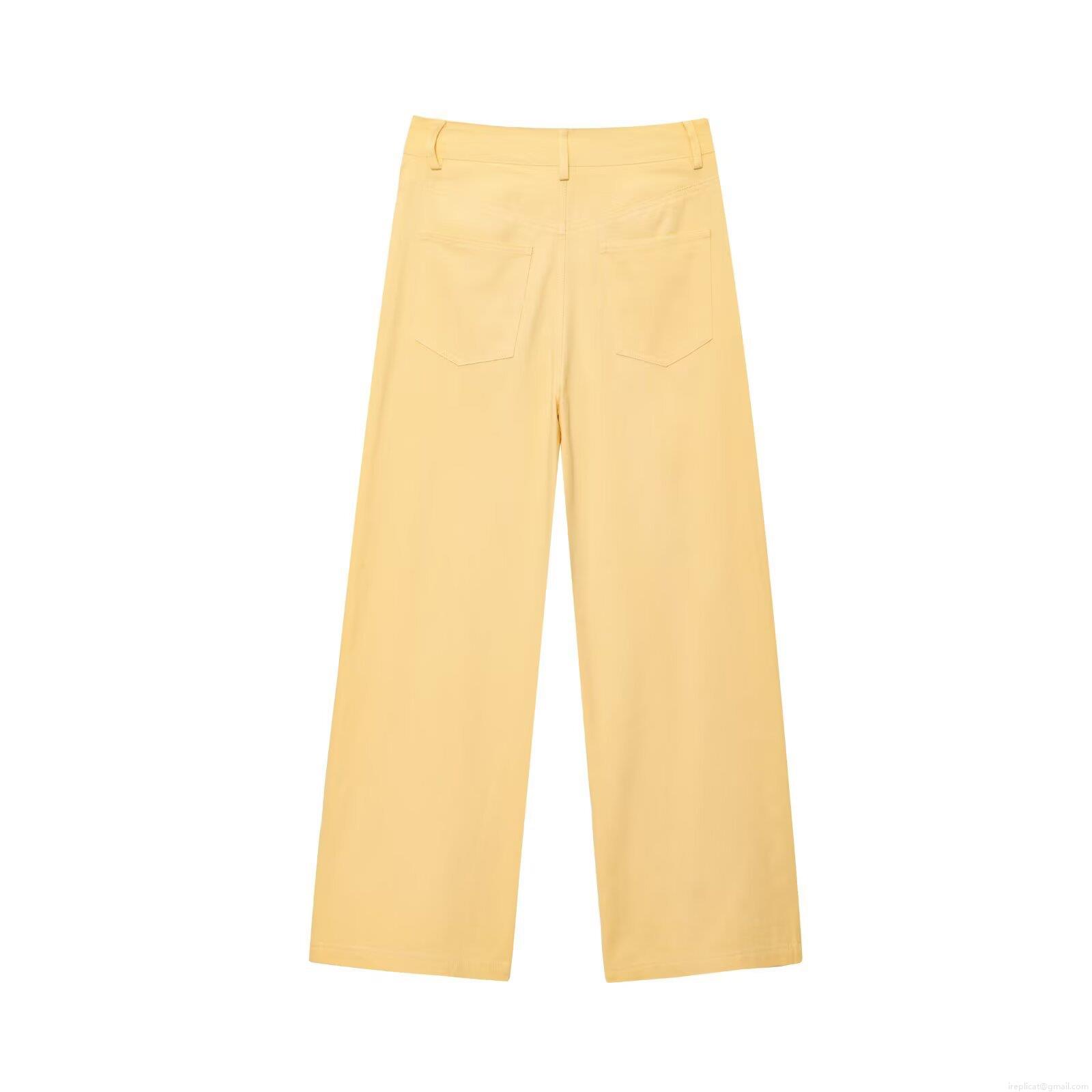 Women's High Waist Wide Leg Casual Pants Sunflower Yellow Straight Trousers Solid Color Polyester Blend Streetwear Style Fashion Slacks