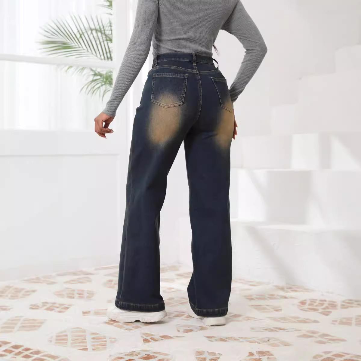 Women's Retro Baggy Wide Leg Jeans Cotton Blend Washed Denim Curved...