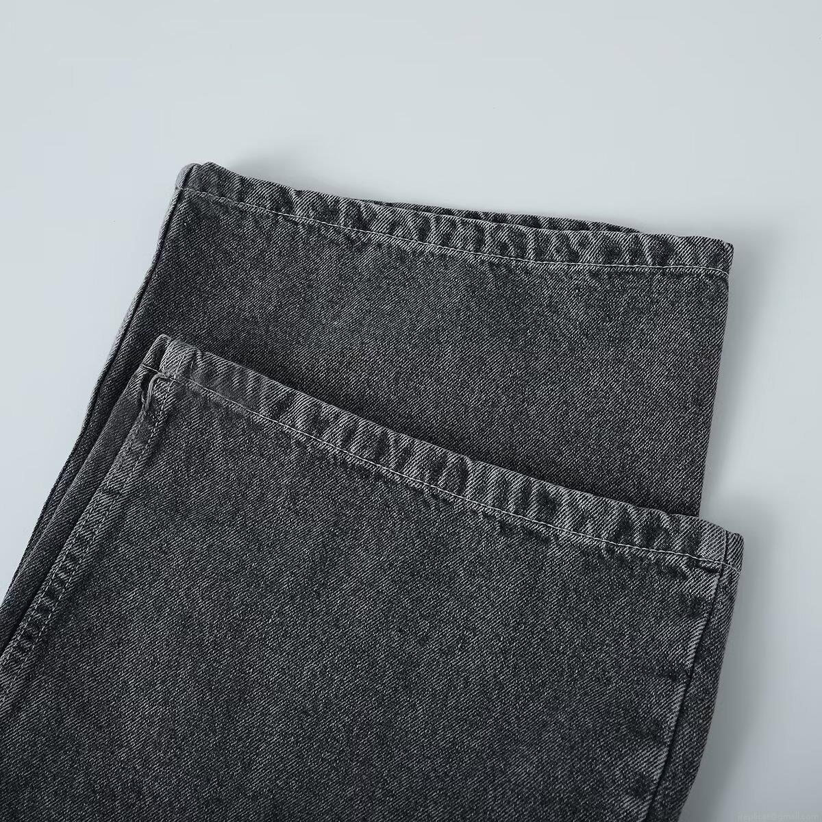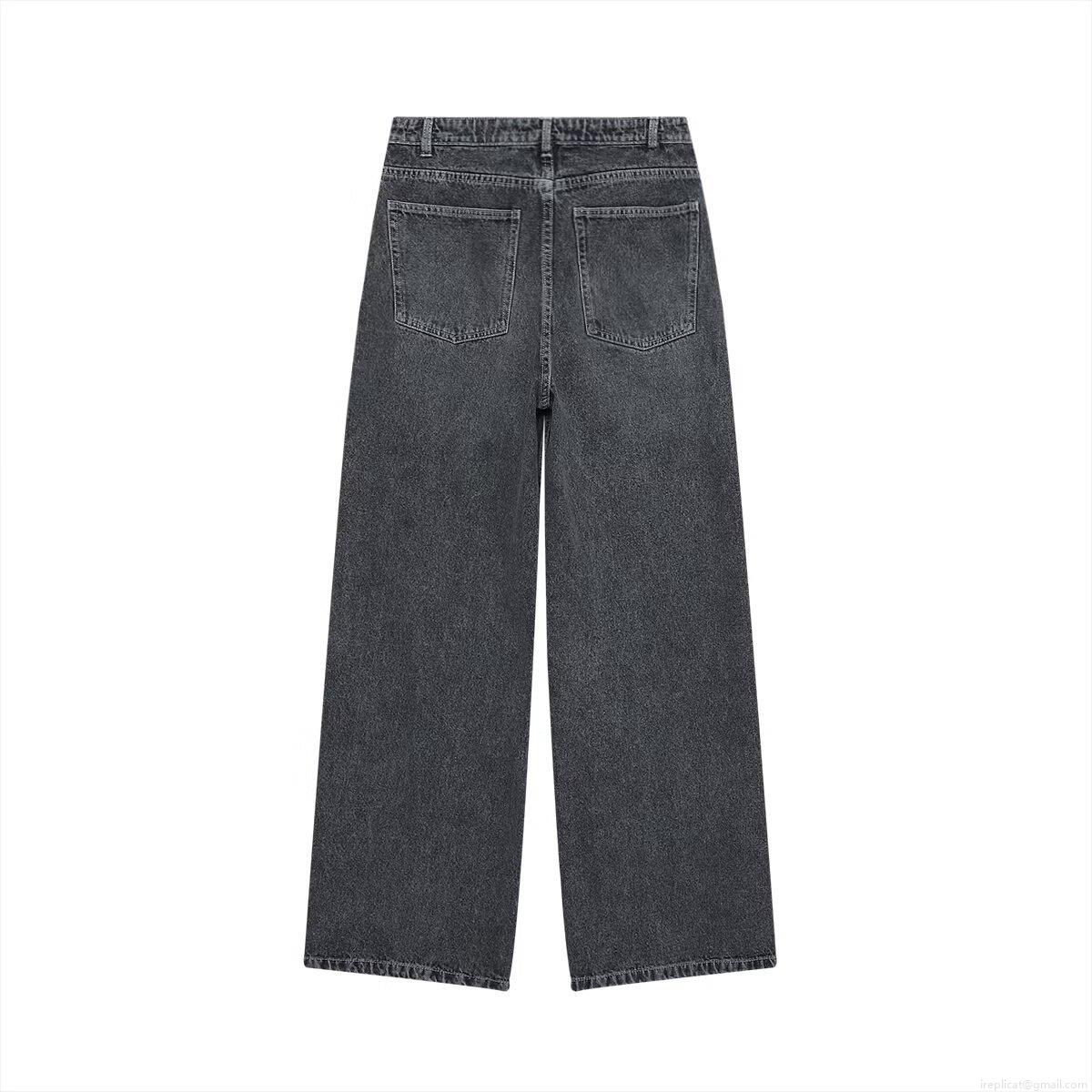 Solid Color, Water Washing Effect, High-waisted Design, Wide-leg Cut, Asymmetrical Buttons, Cross Waist