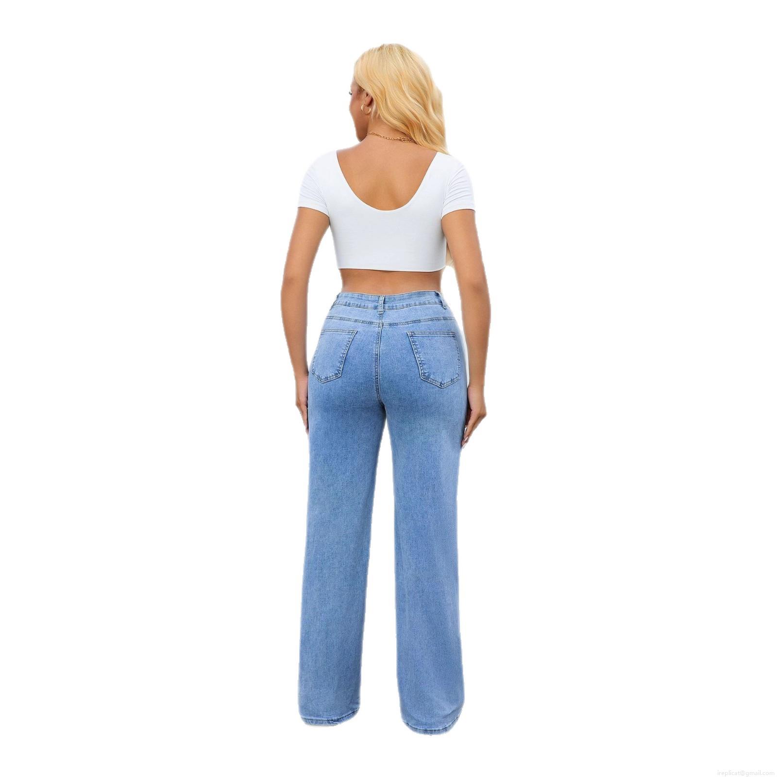 Women's High Waist Wide Leg Jeans Washed Cotton Blend Straight Denim Trousers For Street Casual Fashion Ladies Denim Long Pants