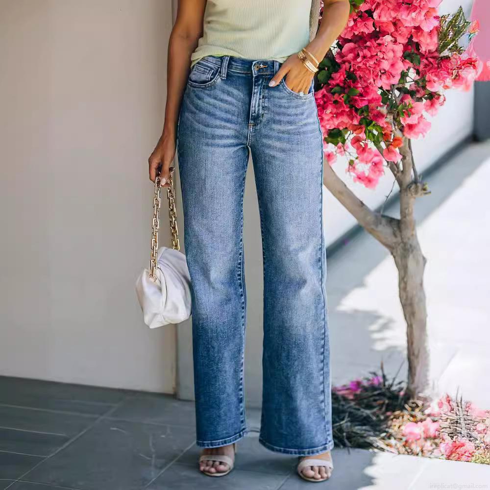 Solid Color, Water Wash, Wide-leg, High-waisted