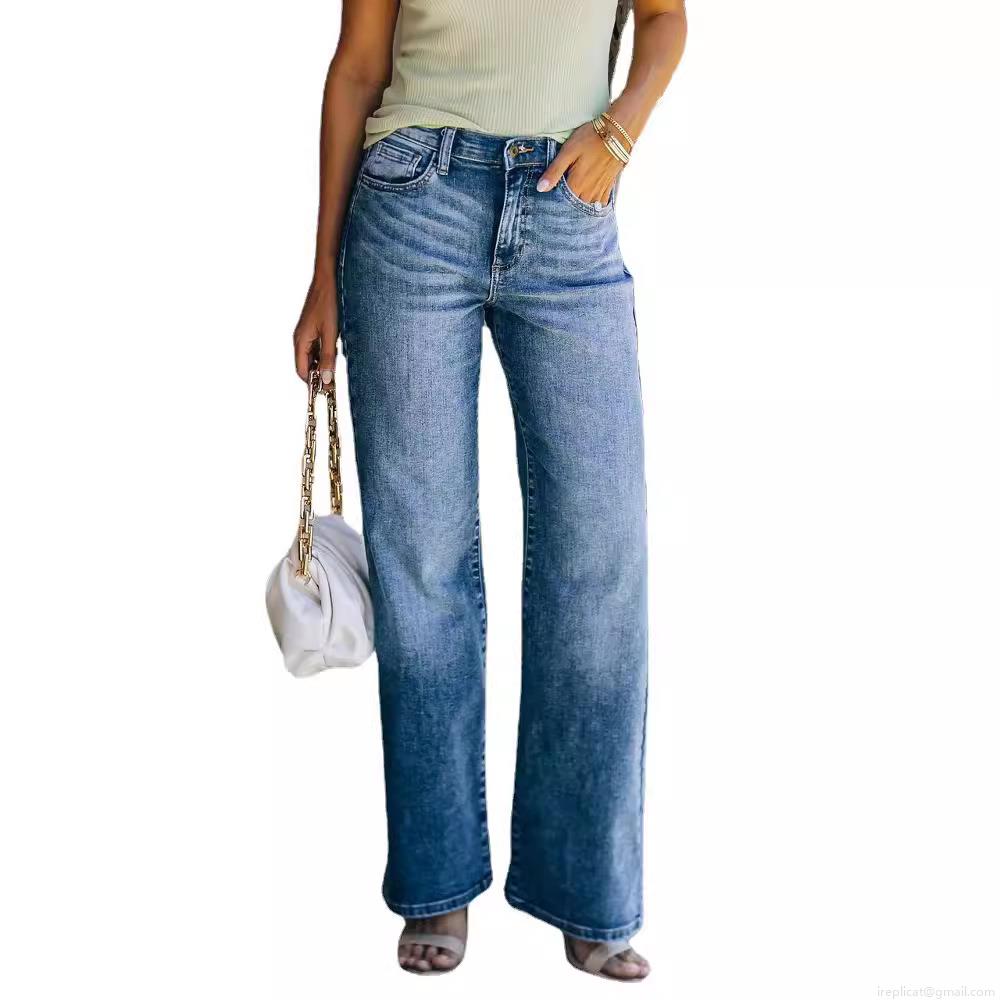 Women's High Waist Wide Leg Jeans Washed Cotton Denim Pants Loose Fit Straight Trousers For Casual Daily Streetwear Lady