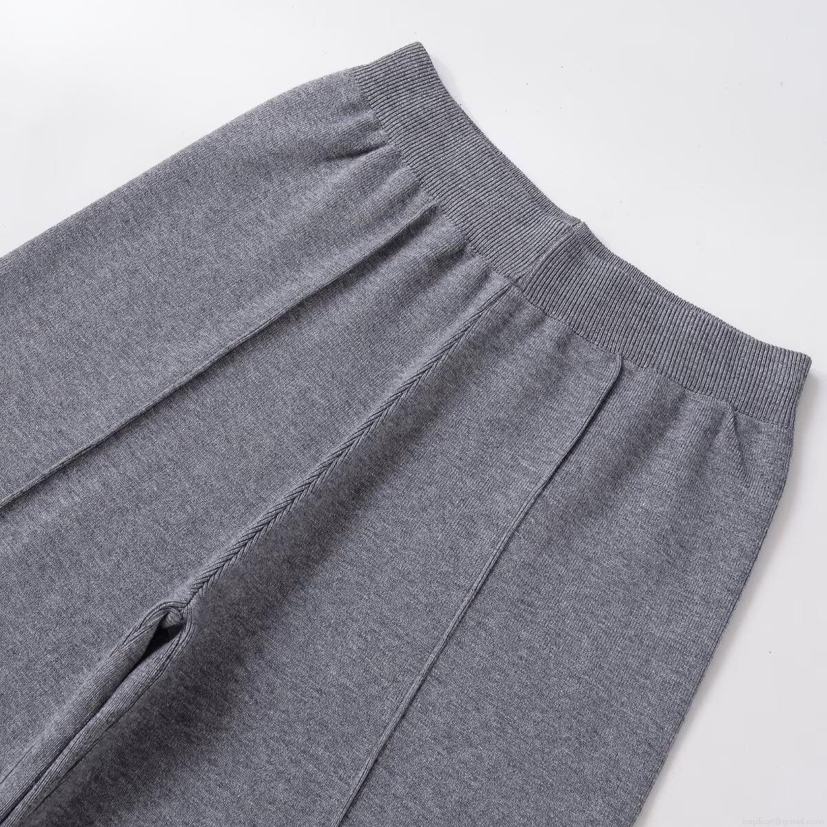 Solid Color, Wide-leg, High-waisted, Knitted Texture, Stitching Decoration