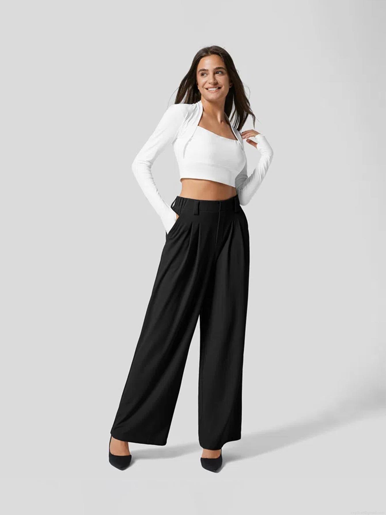 Women's High Waist Wide Leg Pants 100% Polyester Woven Solid Color...