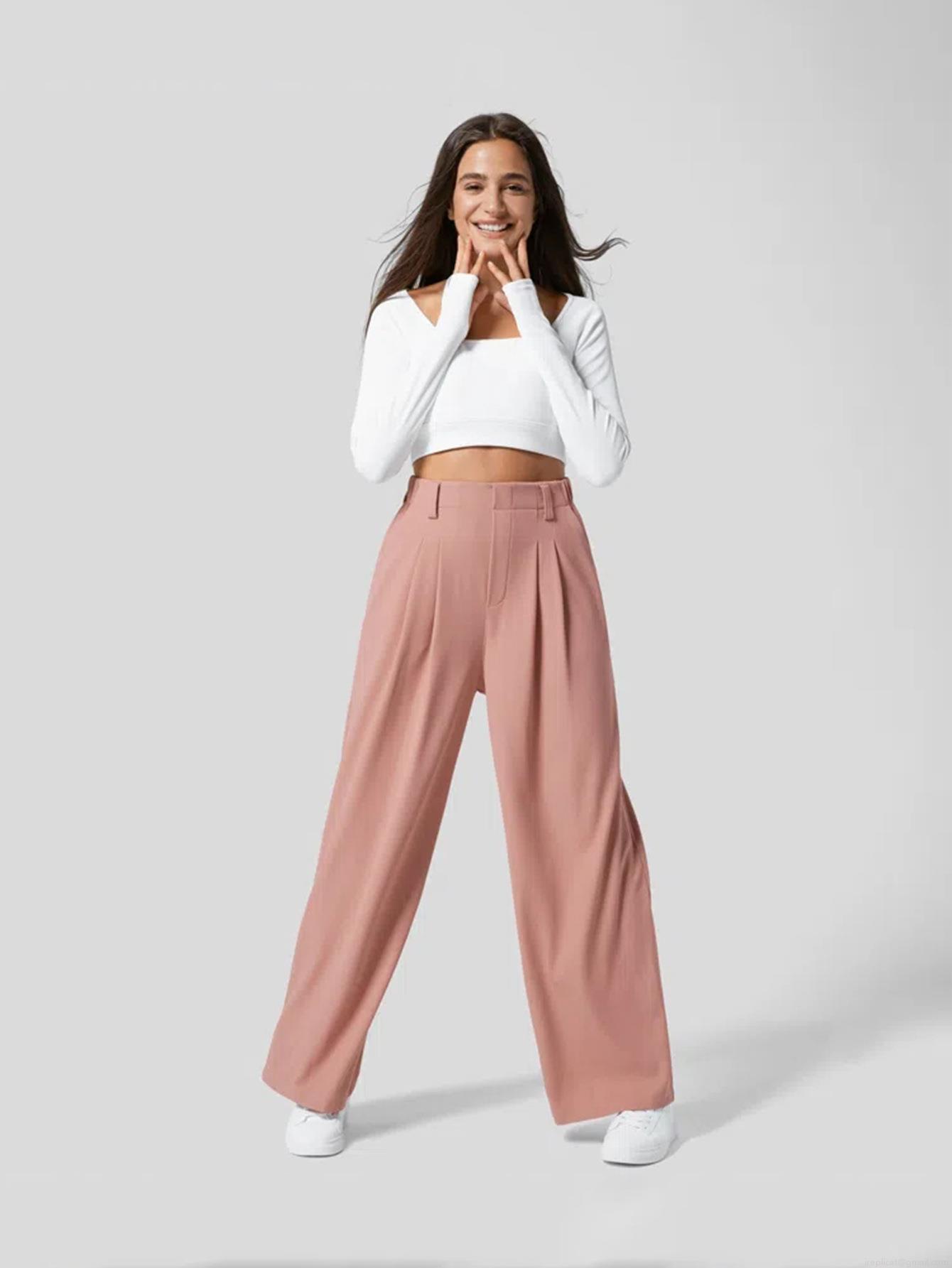 Women's High Waisted Wide Leg Casual Pants 100% Polyester Solid Color...