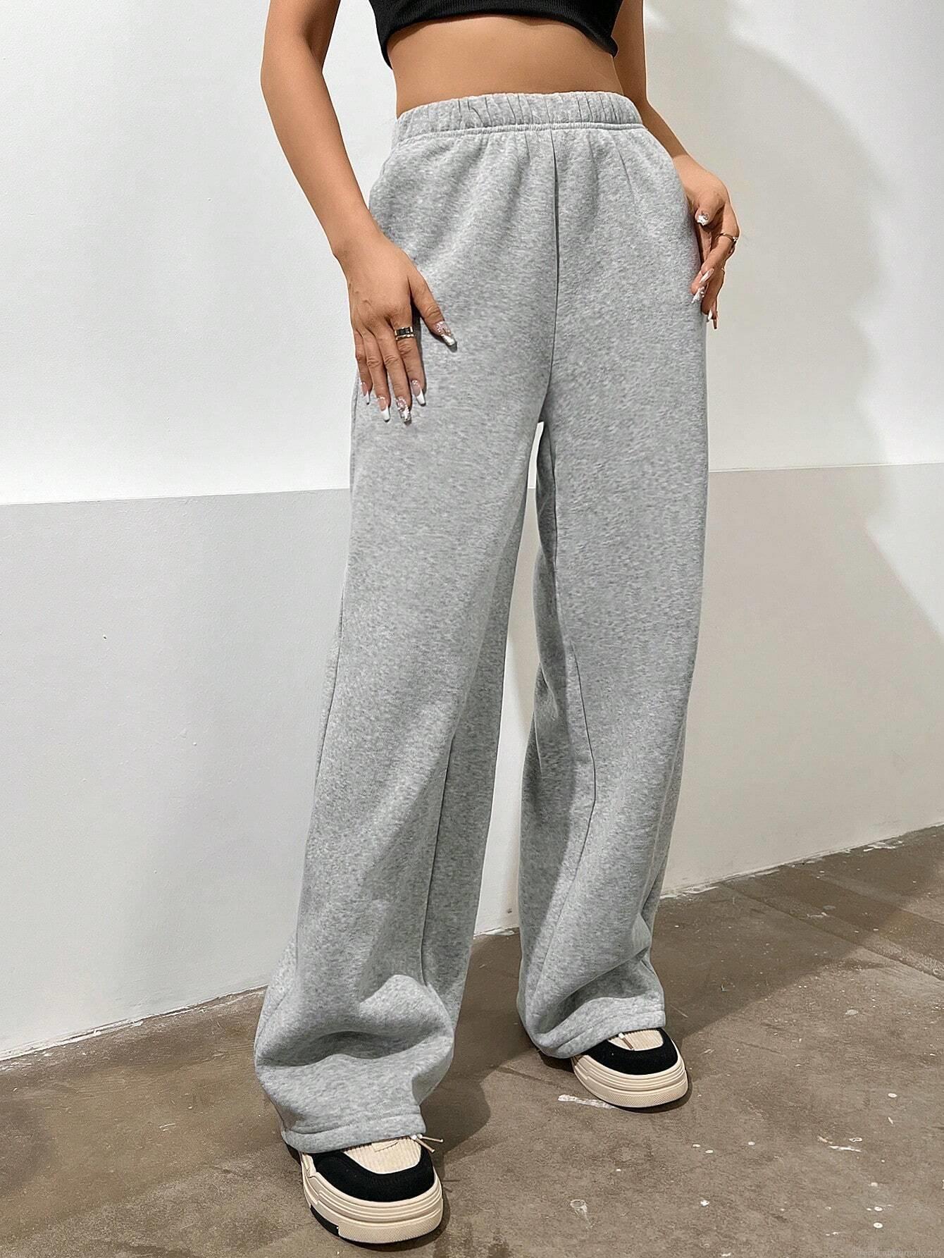 Women's High Waist Wide Leg Pants Casual Loose Lounge Trousers Grey Polyester Cotton Blend Sweatpants Straight Leg Comfortable Trousers For Women Daily Wear